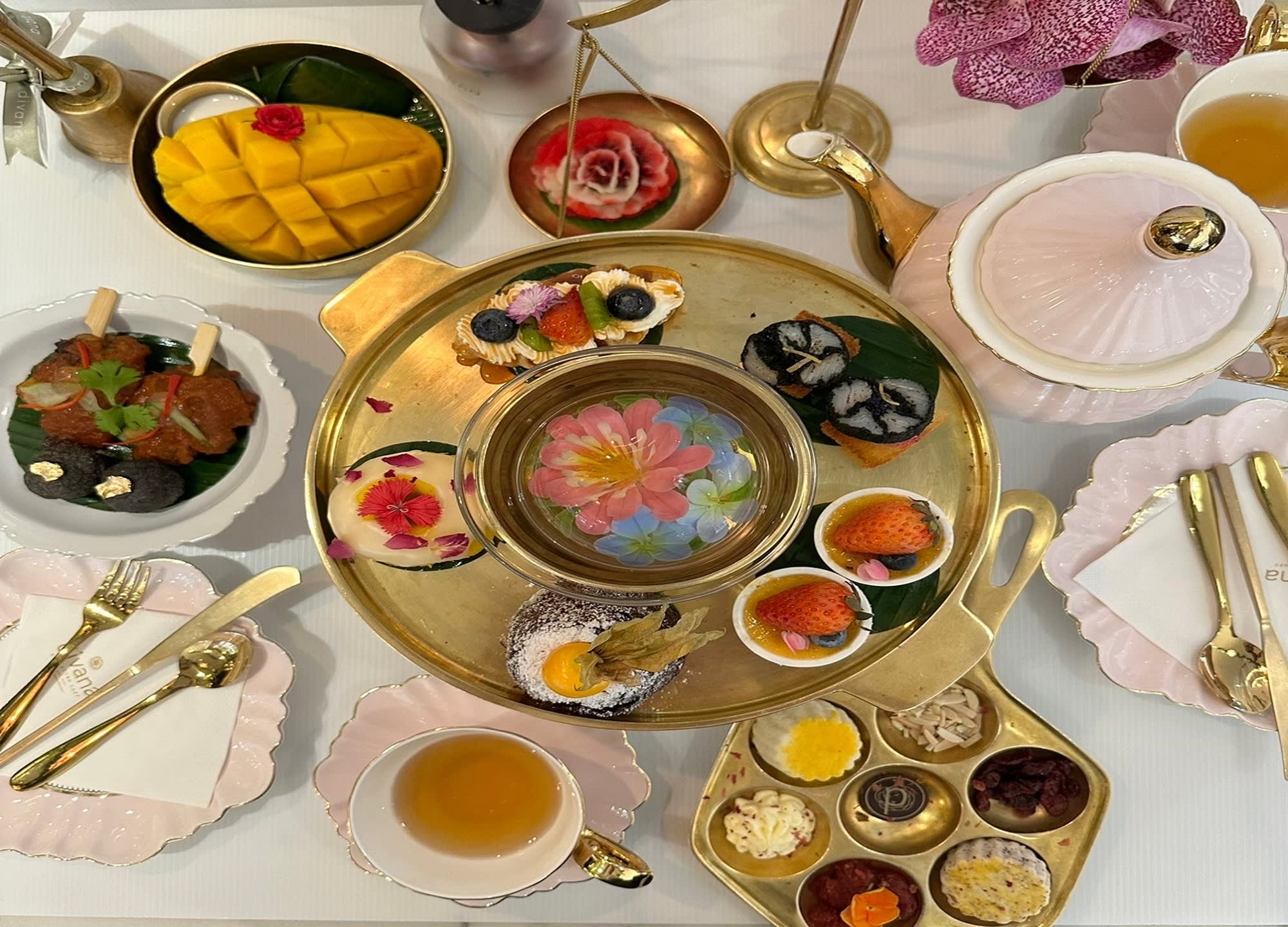 시내 한복판 초대형 쇼핑몰인 센트럴월드 내에 위치하고 있는 디바나 시그니처 카페의 애프터눈 티 세트입니다.