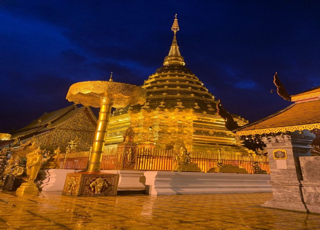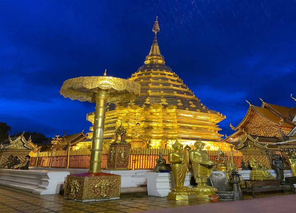 도이수텝 사원은 태국 치앙마이의 상징적인 사원으로, 산 정상에 위치해 있어 치앙마이 시내를 한 눈에 조망할 수 있습니다. 사원 내부에는 황금 불탑이 있어 많은 순례자와 관광객이 찾는 명소이며, 특히 저녁노을과 야경이 아름답기로 유명합니다.