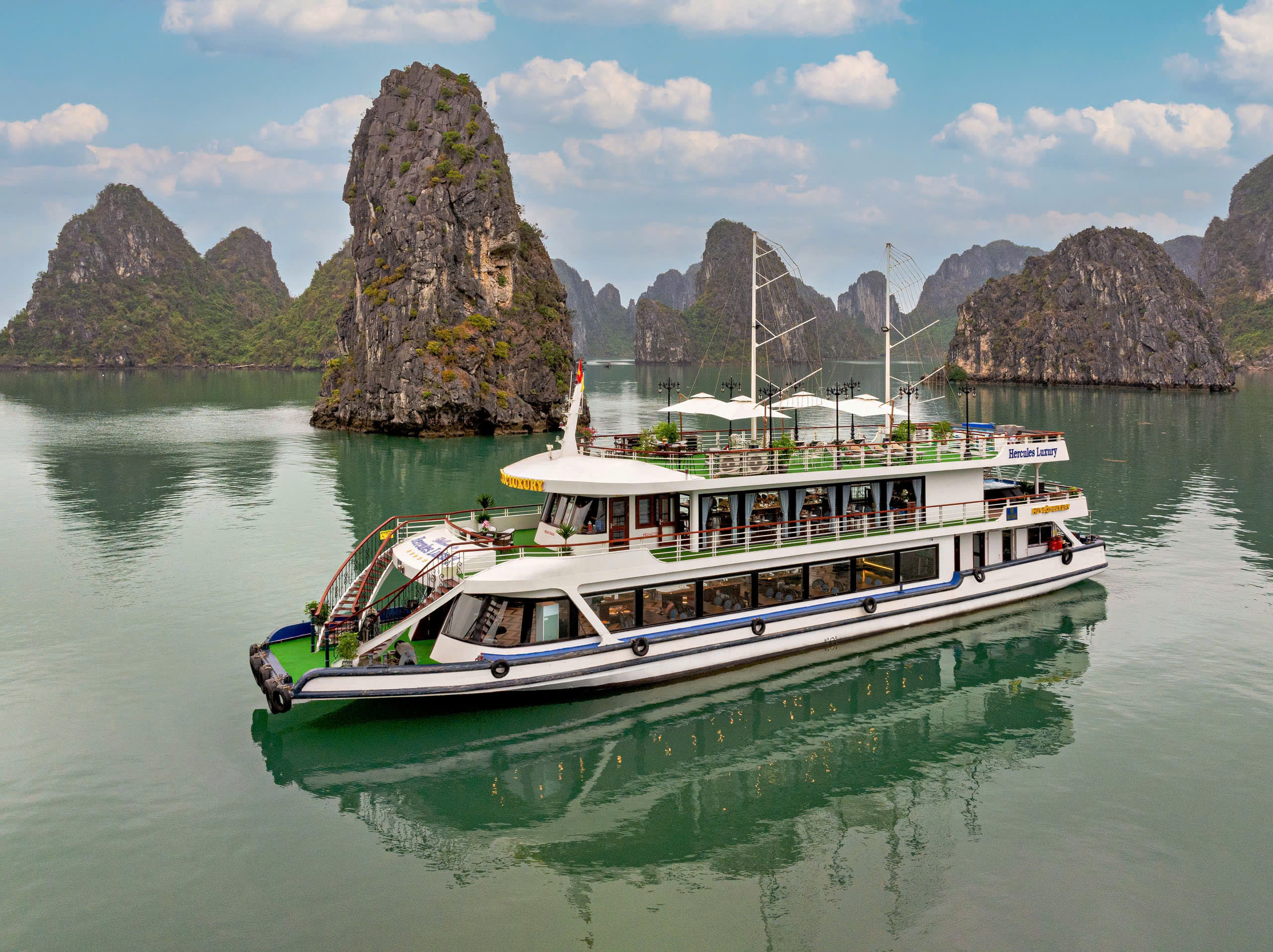 헤라클레스 럭셔리 크루즈는 현대적인 스타일과 은은한 인도차이나풍 요소가 조화를 이루는 세련된 디자인으로 많은 찬사를 받는 5성급 최신 선박입니다.
