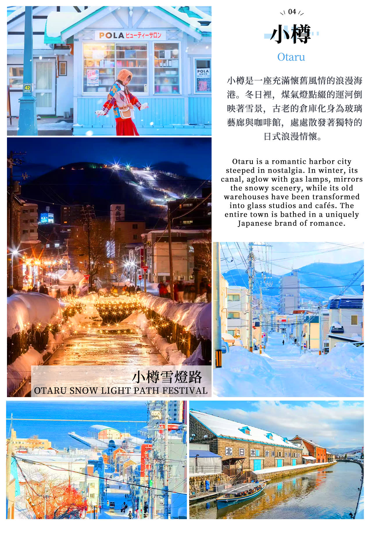 * 오타루의 낭만적인 항구 도시에서 유리 공예, 오르골, LeTAO 디저트를 자유롭게 구경하고 사진을 찍어보세요.