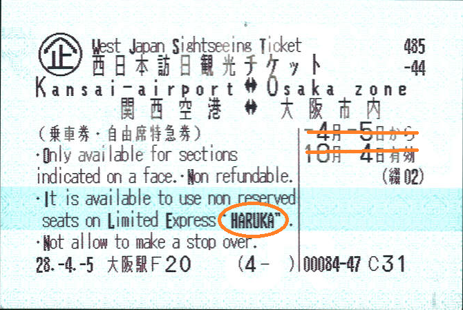 [하루카 정보]- 하루카 티켓은 간사이공항에서 오사카역 or 신오사카역행 방향으로만 이용 가능하며, 역방향 이용 불가합니다.