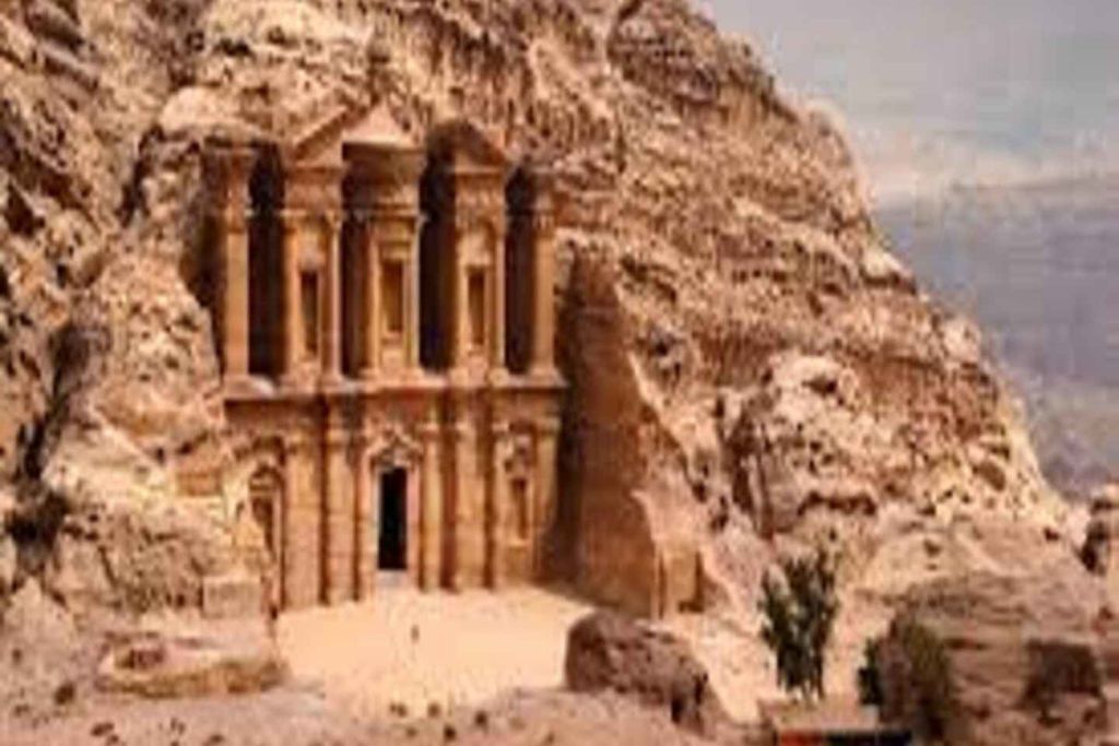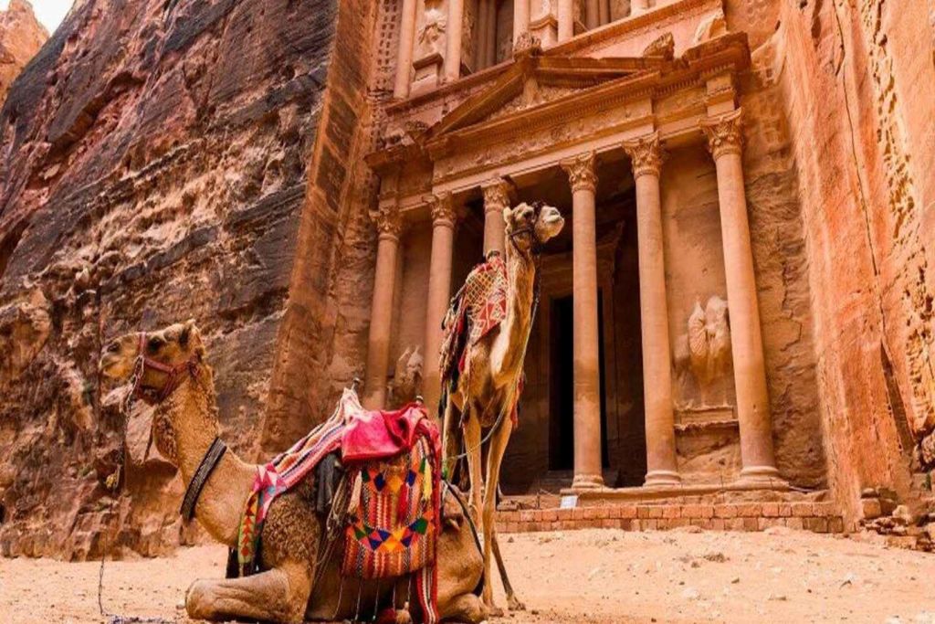 암만에서 페트라가 있는 남쪽으로 여행하세요. 나바테아인들이 설립한 페트라는 세계 불가사의 중 하나입니다. 암만에서 225km 거리에 있는 페트라는 2,000년 전 바위를 깎아 지어졌습니다.