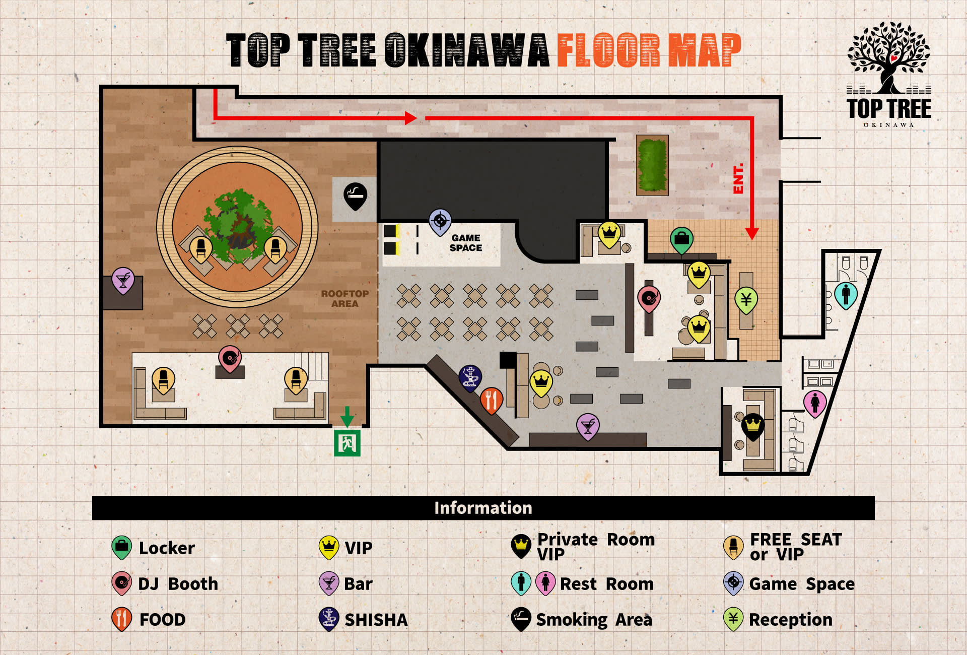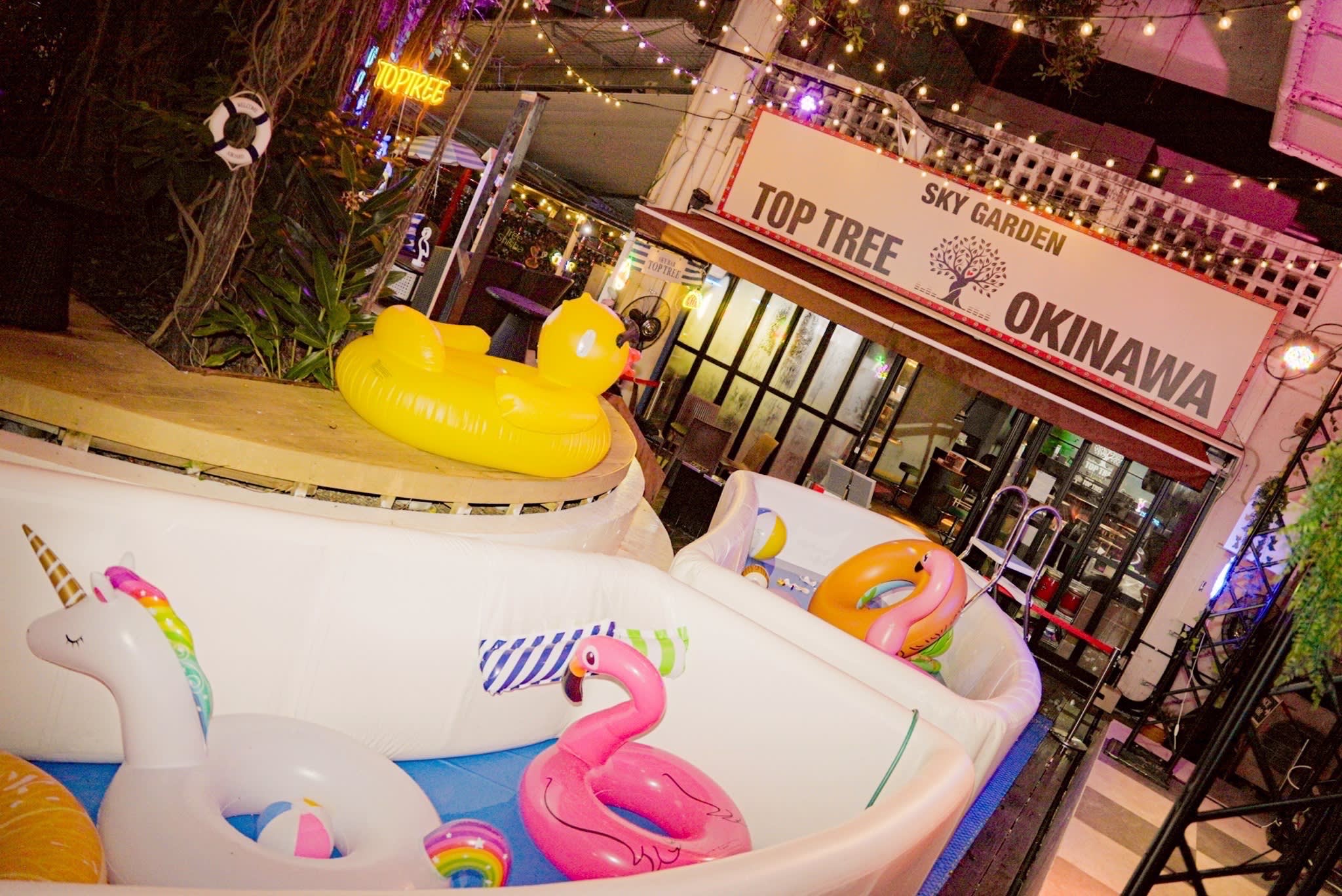 2023년 7월 7일 그랜드 오픈!! 오키나와 국제 거리, 돈키호테 최상층에 엔터테인먼트 푸드홀 「TOP TREE OKINAWA」가 탄생!! 「먹는」「마시는」「노는」「만나는」을 컨셉으로, 점내에는 포장마차 마을과 같이, 다양한 음식 부스가 즐비하게 늘어서 있어, 자유롭게 음식을 즐길 수 있는 것과 함께, 놀이와 음악의 요소를 충실하게 함으로써, 방문하신 고객님끼리의 교류의 장으로서도 즐길 수 있는, 오키나와 최초의 엔터테인먼트 푸드홀입니다.