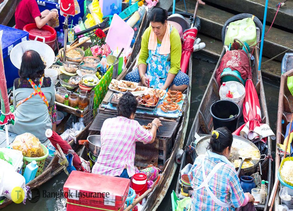 태국인들이 즐겨 찾는 먹거리와 간식거리는 물론, 해가 지면 수상가옥들과 상점들의 불빛으로 더욱 다양한 볼거리가 제공됩니다.