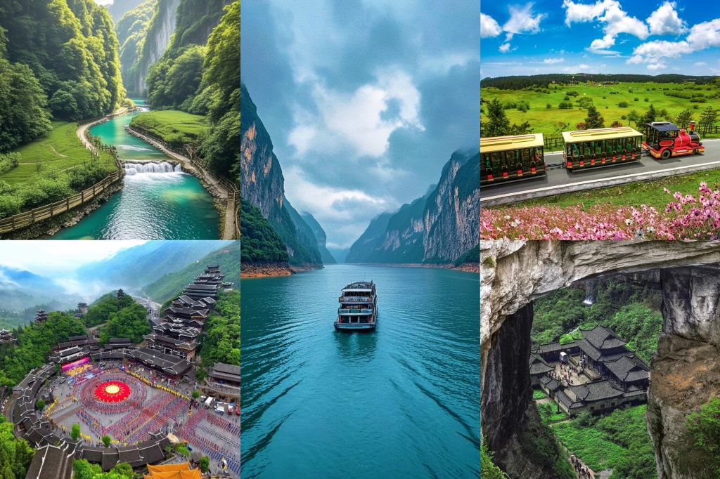 * 2일차: 호텔 출발 – 우장화랑(乌江画廊) – 공탄고진(龚滩古镇) – 아依허(阿依河) – 우장(乌江) 대형 묘족 가무 야간 쇼, 식사: 아침, 저녁, 숙박: 펑수이(彭水) 호텔