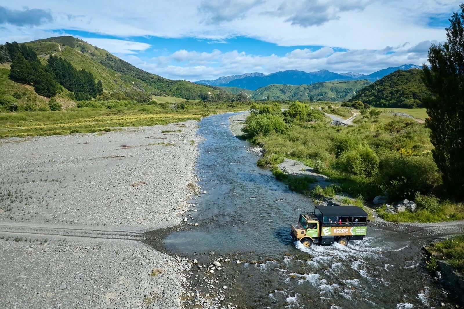 3.5시간 동안 카이코우라를 완전히 새로운 시각으로 만나보는 어드벤처 에코 투어에 참여하세요. 투어는 카이코우라 중심부에서 시작하며, 친절한 스태프가 여러분을 맞이할 거예요. 간단한 오리엔테이션 후, 에어컨이 완비된 편안한 셔틀을 타고 아름다운 경치를 감상하며 15분 동안 이동하여 준비 장소에 도착합니다. 그곳에서 특별 제작된 유니목 4X4 차량을 타고 카후타라 강과 라카누이 스테이션을 탐험해보세요. 두 명의 전문 현지 가이드와 함께 이 지역의 풍부한 역사와 숨겨진 이야기를 듣고, EcoZip 체험이 라카누이 스테이션의 농지를 고유림으로 복원하는 데 어떻게 기여하는지 알아보세요.
