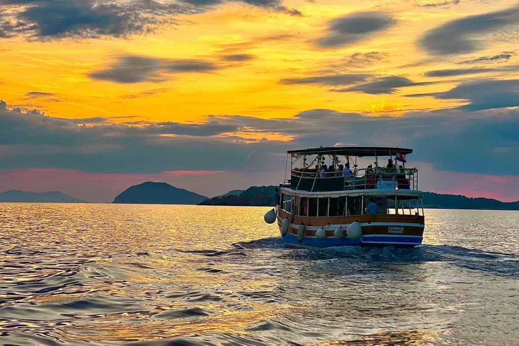숙소에서 편안하게 픽업되어 넓은 보트로 이동합니다. 콜로체프, 로푸드, 시판 섬으로 향하는 항해 모험을 시작하고 도시의 경치를 감상하세요.
