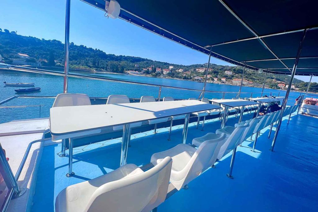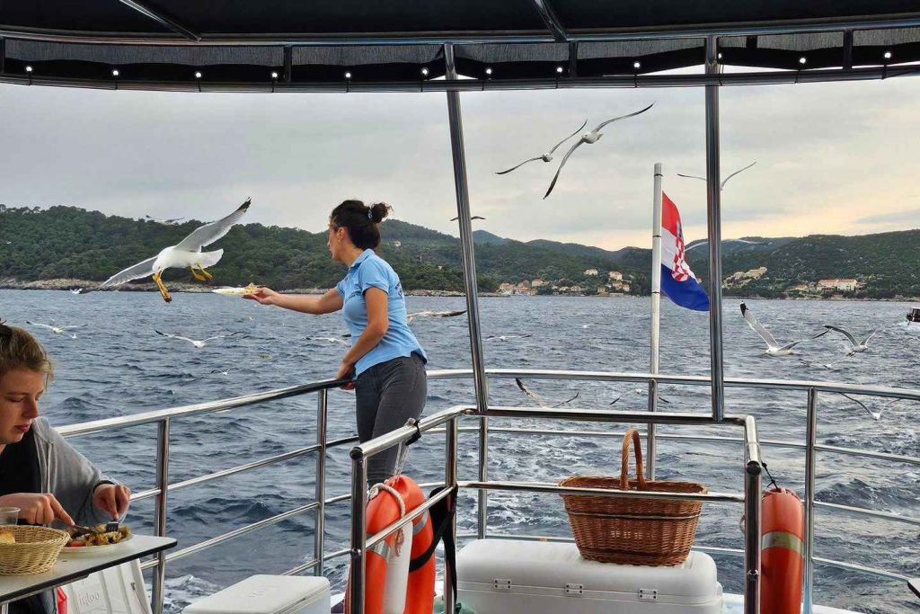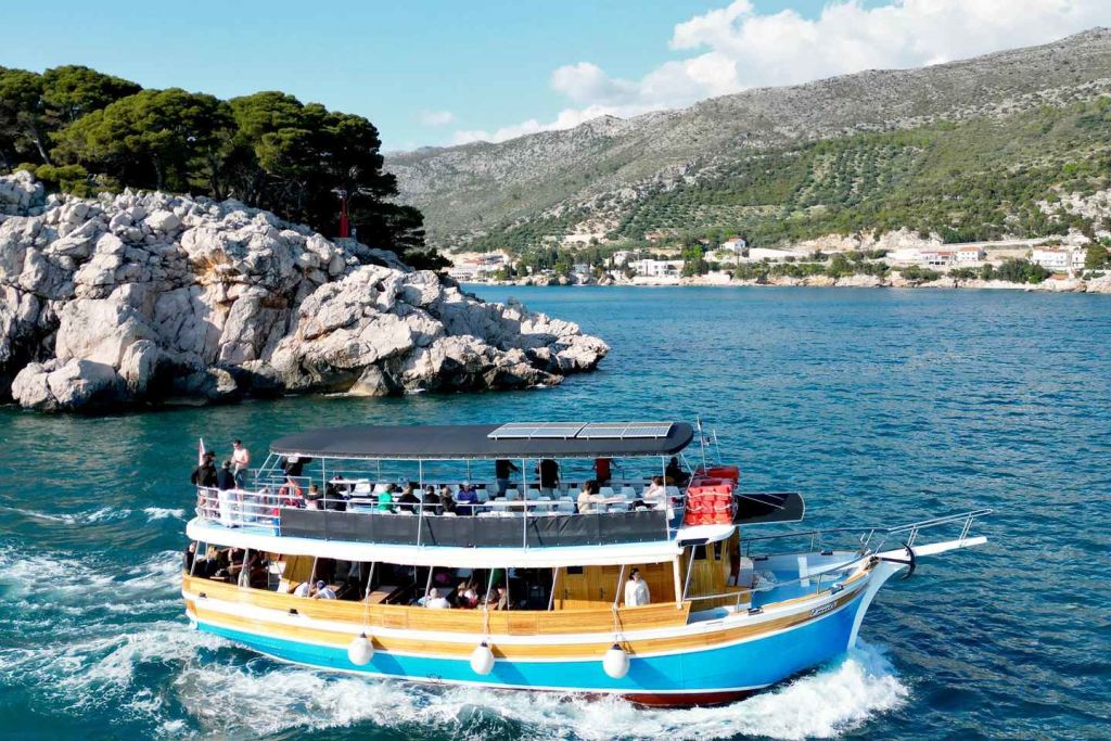 도중에 크로아티아의 역사와 문화에 대해 알아보세요. 닭고기, 생선 또는 채식 요리로 신선한 점심을 맛보세요. 점심과 보트의 오픈 바에서 음료를 곁들여 보세요. 보트 여행이 끝나면 두브로브니크의 숙소로 돌아오세요.