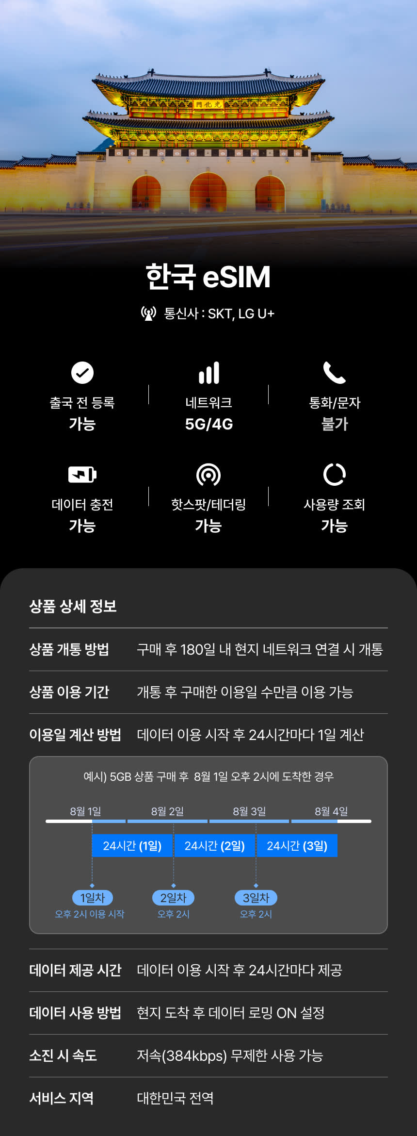 한국 이심 eSIM 제공량 모두 소진 이후에도 무제한 데이터!