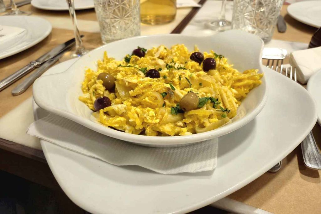 리스본에서 가장 오래된 선술점에서 제공되는 바칼라우 파이(Pastel de Bacalhau)라는 바삭한 대구 케이크로 따뜻한 환영을 받으며 미식 모험을 시작하세요. 두 번째로 맛보는 전채 요리는 이베리아 햄(파타 네그라)입니다. 포르투갈의 풍미 깊은 전통을 소개하는 맛있는 시작입니다.