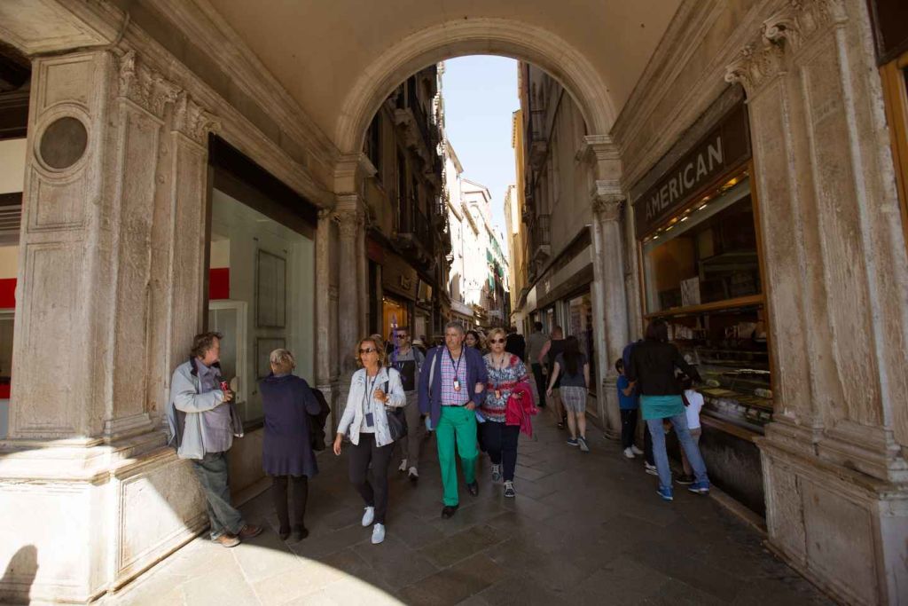 리알토 다리와 산마르코 광장을 연결하는 주요 쇼핑 거리인 메르체리에를 따라 걸어보세요