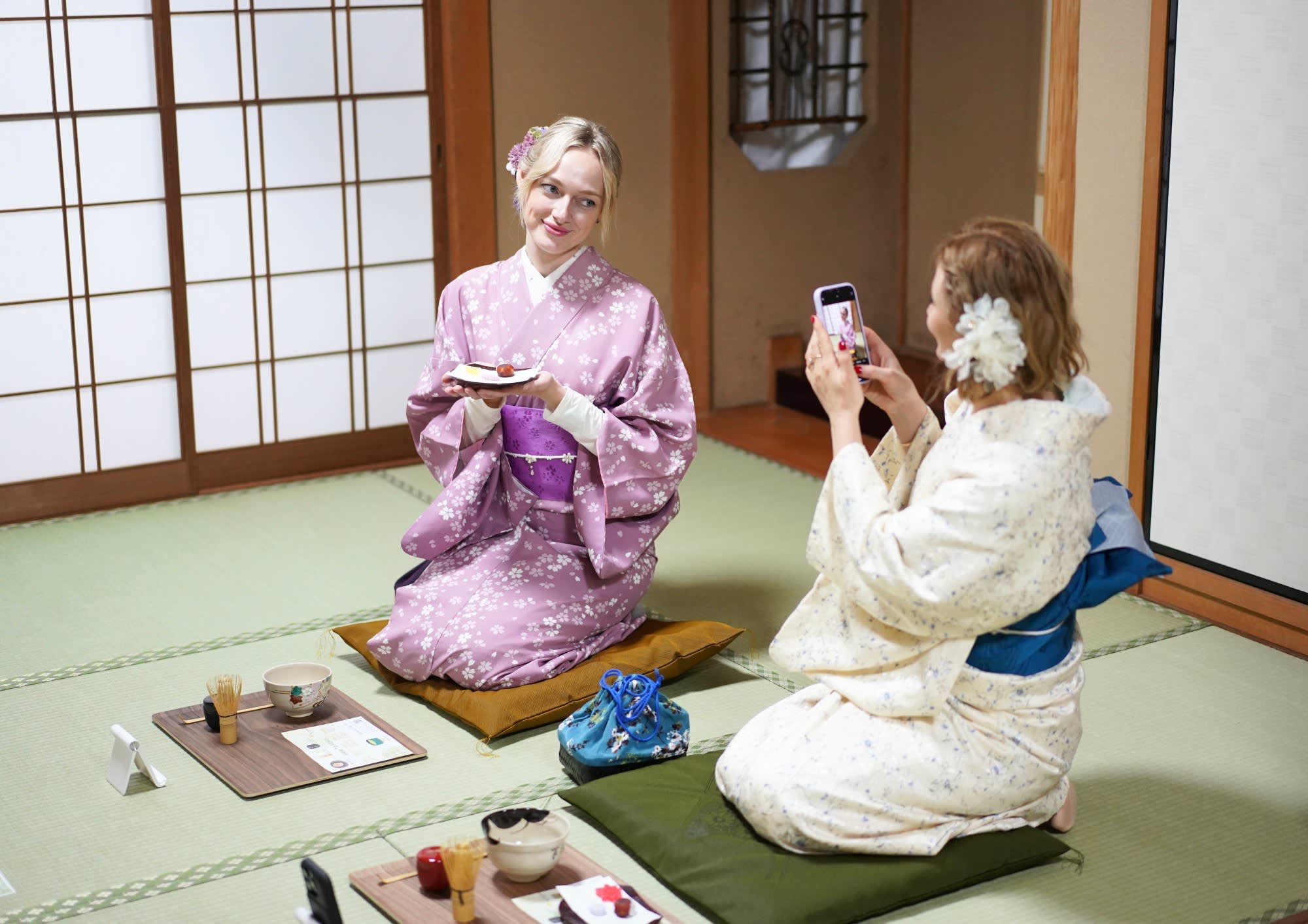 방문객들은 정통 기요미즈야키 찻잔을 사용하고, 교토산 프리미엄 우지 말차를 맛보며, 전통 일본 과자를 즐길 수 있습니다. 외국인 방문객을 위한 명확한 영어 설명도 제공됩니다.