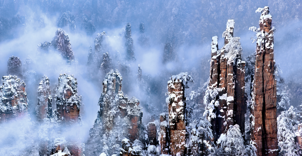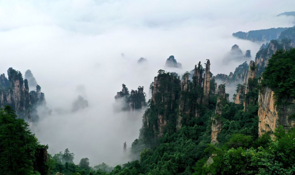 장자제 국가삼림공원은 기이한 봉우리, 기암괴석, 운해와 숲의 물결로 세계적으로 유명하며, "인간 세상의 선경(仙境)"이라 불립니다.