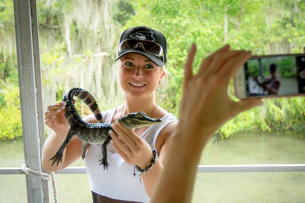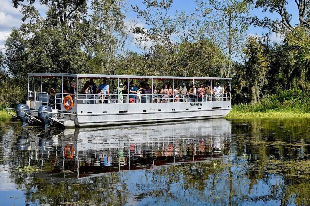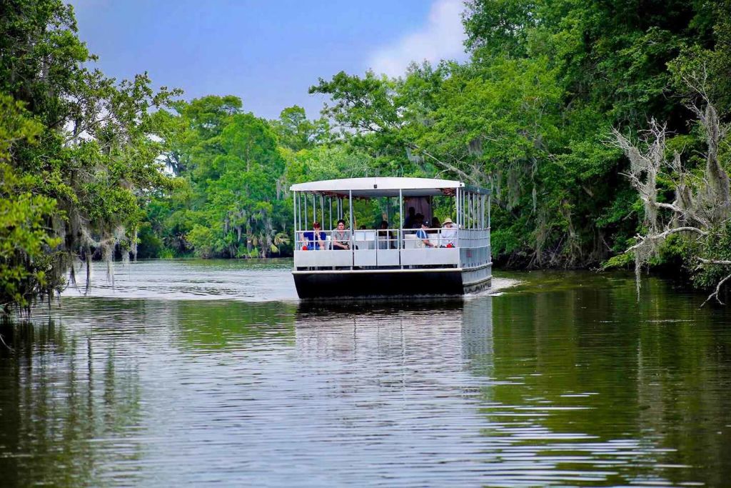미시시피 강을 건너는 짧은 버스 여행을 마친 후, 루이지애나 습지와 베이우로 향하는 매혹적인 보트 여행을 즐기세요.