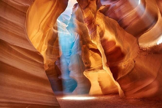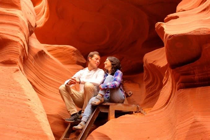 * 로워 앤털로프 캐니언에서 사다리를 타고 탐험하며, 벽면에 드리운 햇빛이 만들어내는 놀라운 광경을 만나보세요.