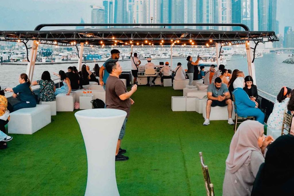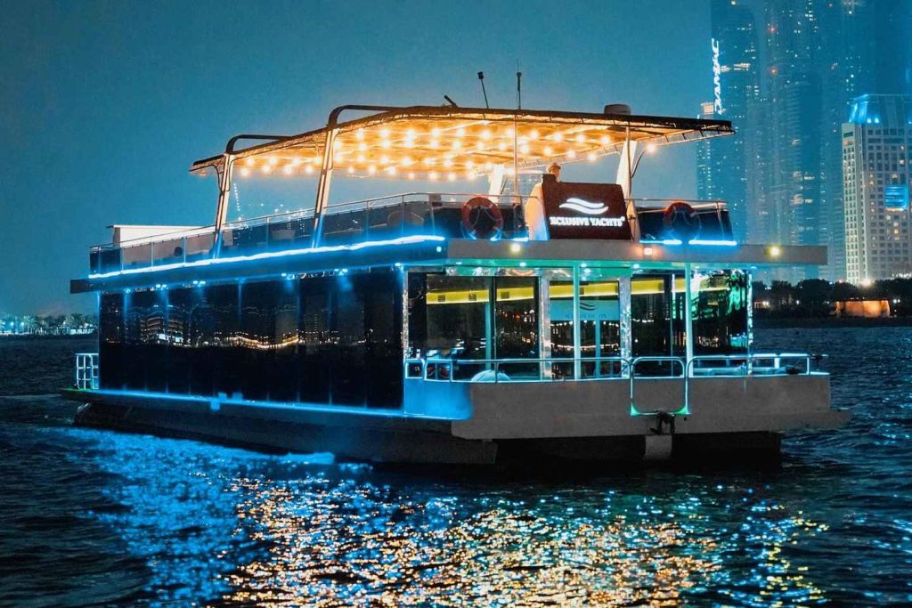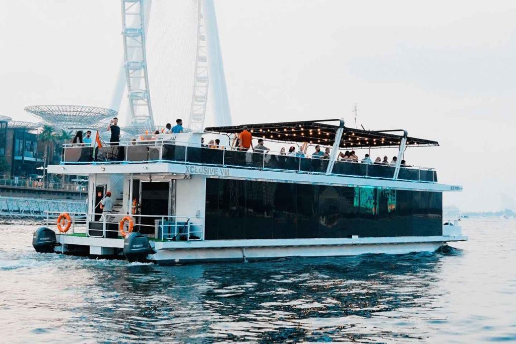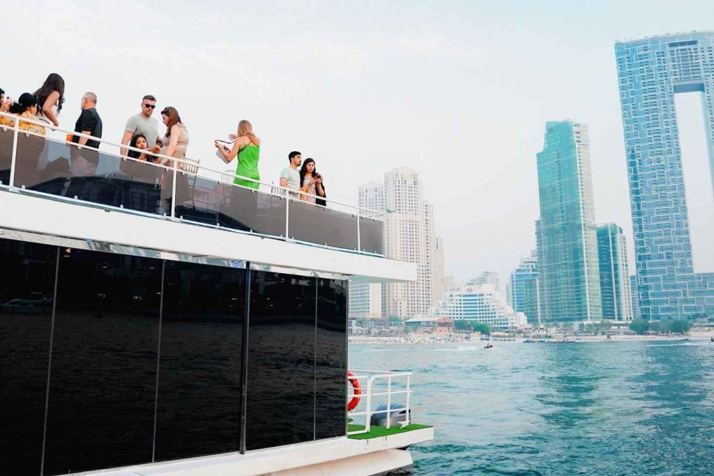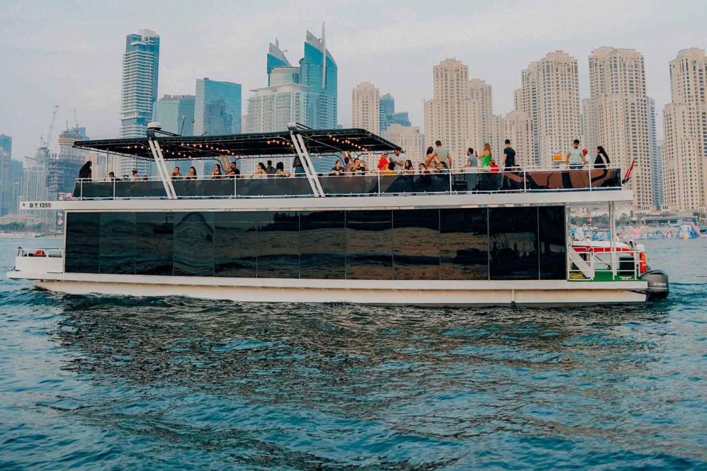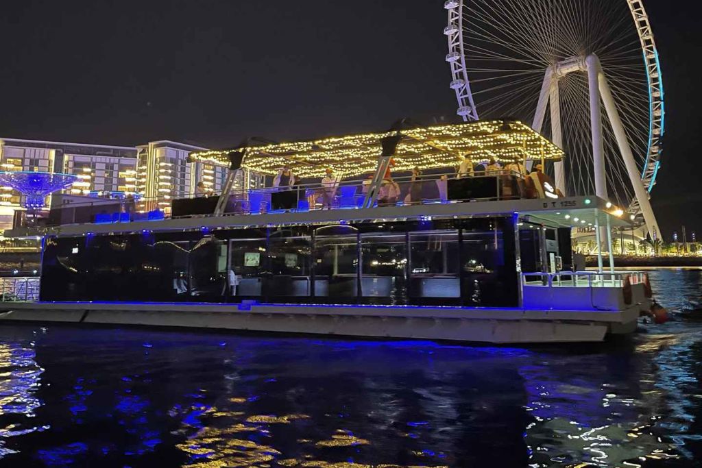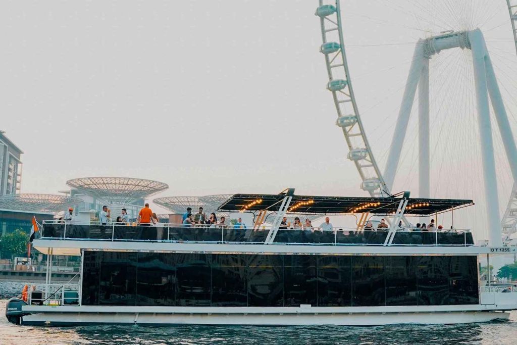 두바이 마리나에서 특별한 크루즈를 합리적인 가격에 즐겨보세요. 가족이나 친구들과 함께 두바이 마리나와 JBR을 탐험해 보세요. 바다 위의 특별한 전망대에서 세계 최대의 페리스 휠, 아인 두바이를 감상하세요. 배에 승선하는 순간부터 레드카펫 서비스로 환영받으세요. 밤에 빛나는 두바이의 상징적인 건물들과 오픈 에어 데크에서 불어오는 상쾌한 바람을 경험해 보세요.