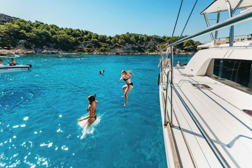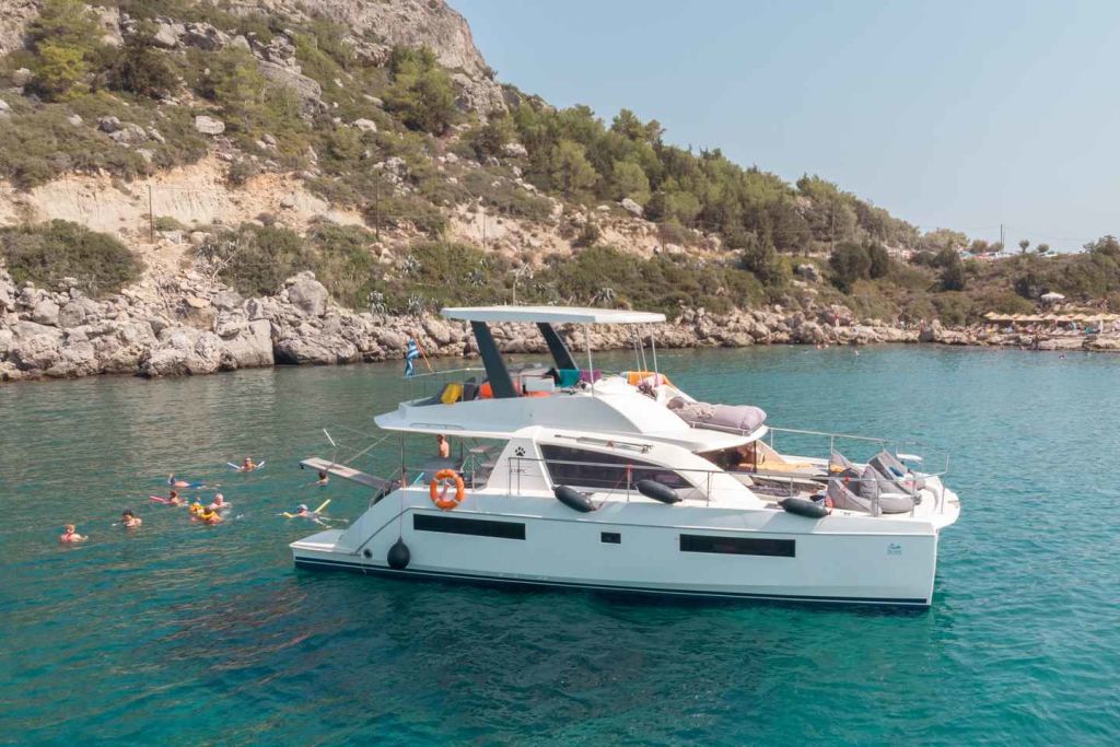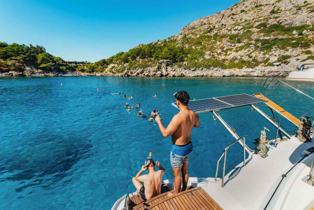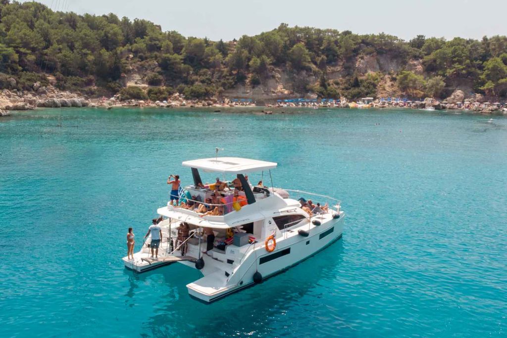 세일링 또는 동력 카타마란에 탑승하여 아름다운 로도스 섬을 둘러보는 여행을 시작하세요. 하루의 첫 번째 기항지인 앤서니 퀸스 베이에서 멋진 경치를 감상하고 수영과 스노클링을 즐길 수 있는 크루즈를 타세요.