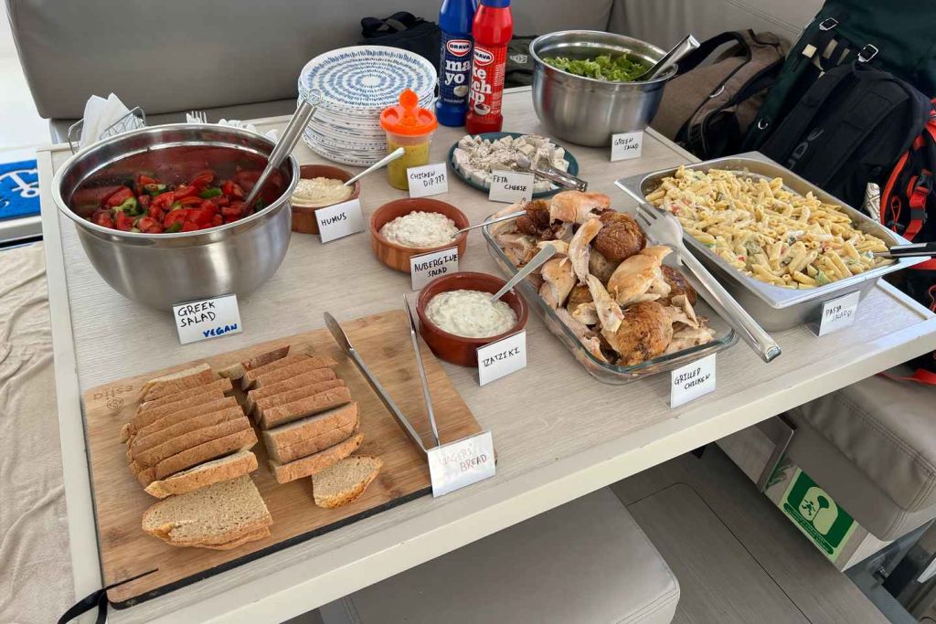 그리스 와인과 현지 별미로 구성된 점심 뷔페를 즐겨보세요.