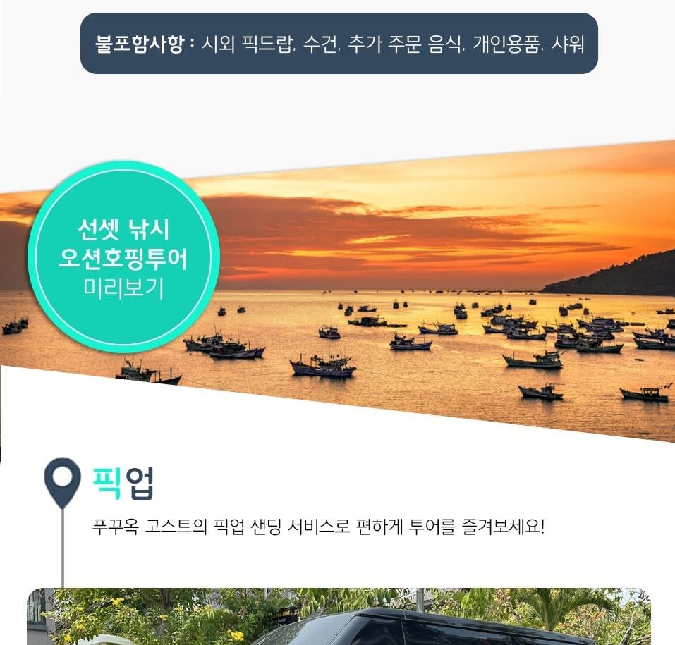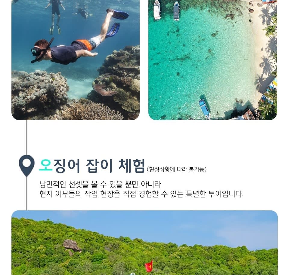 * 카카오채널로 연락주셔야 예약확정 가능하니 반드시 예약시에는 해당 카카오 채널로 연락바랍니다. (카톡검색시 @푸꾸옥고스트투어) * 짝수날에만 가능한 투어입니다. * 베트남 국/공휴일에는 인건비, 차량비 등이 인상되는 관계로 추가금(현지지불 등)이 발생될 수 있습니다.