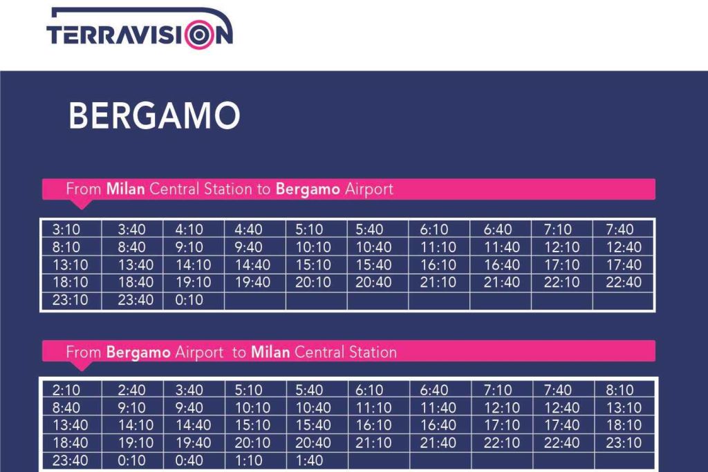 - 베르가모 공항에서는 도착장 바로 바깥에 있는 버스 정류장 n.4에서 버스를 쉽게 찾을 수 있습니다.