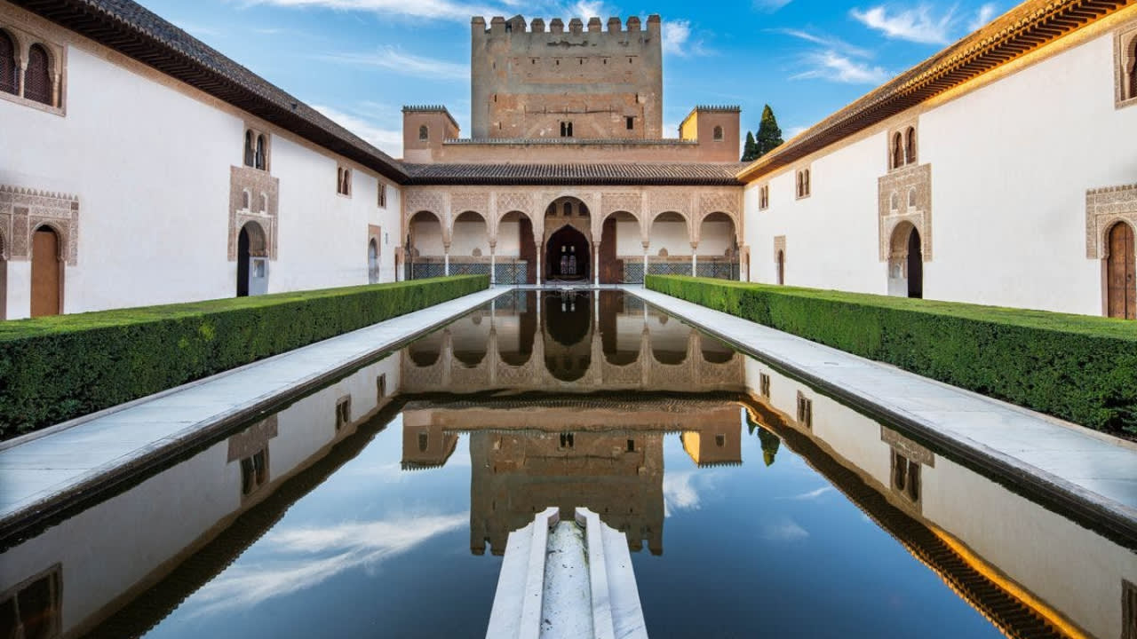알함브라의 웅장함에 흠뻑 빠져보세요. 무어 양식 건축의 숨 막힐 듯 아름다운 걸작이 산속에 자리 잡고 있습니다. 아치, 안뜰, 분수 하나하나가 지나간 시대의 이야기를 들려주며 역사, 예술, 웅장함이 완벽한 조화를 이룹니다.