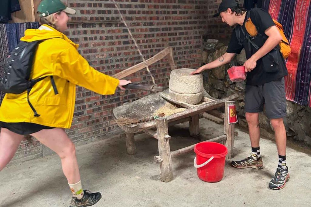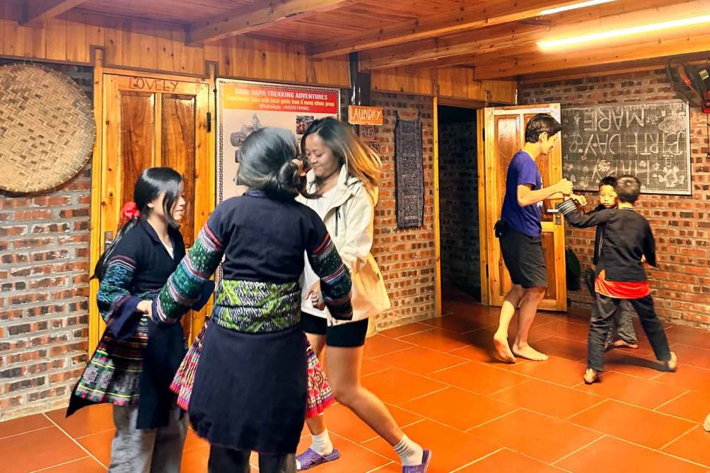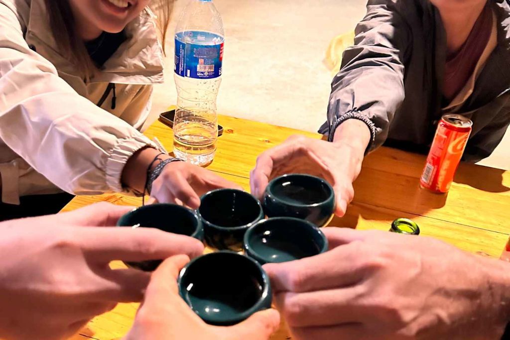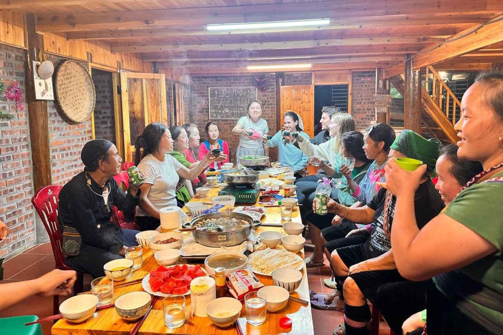 "해피 워터"(현지 쌀주)와 함께 즐거운 시간을 보내며 진정한 몽족 스타일의 저녁을 경험해보세요.