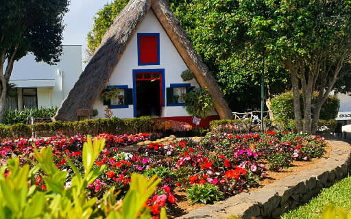 상징적인 초가집이 있는 매력적인 산타나 마을을 탐험하세요.