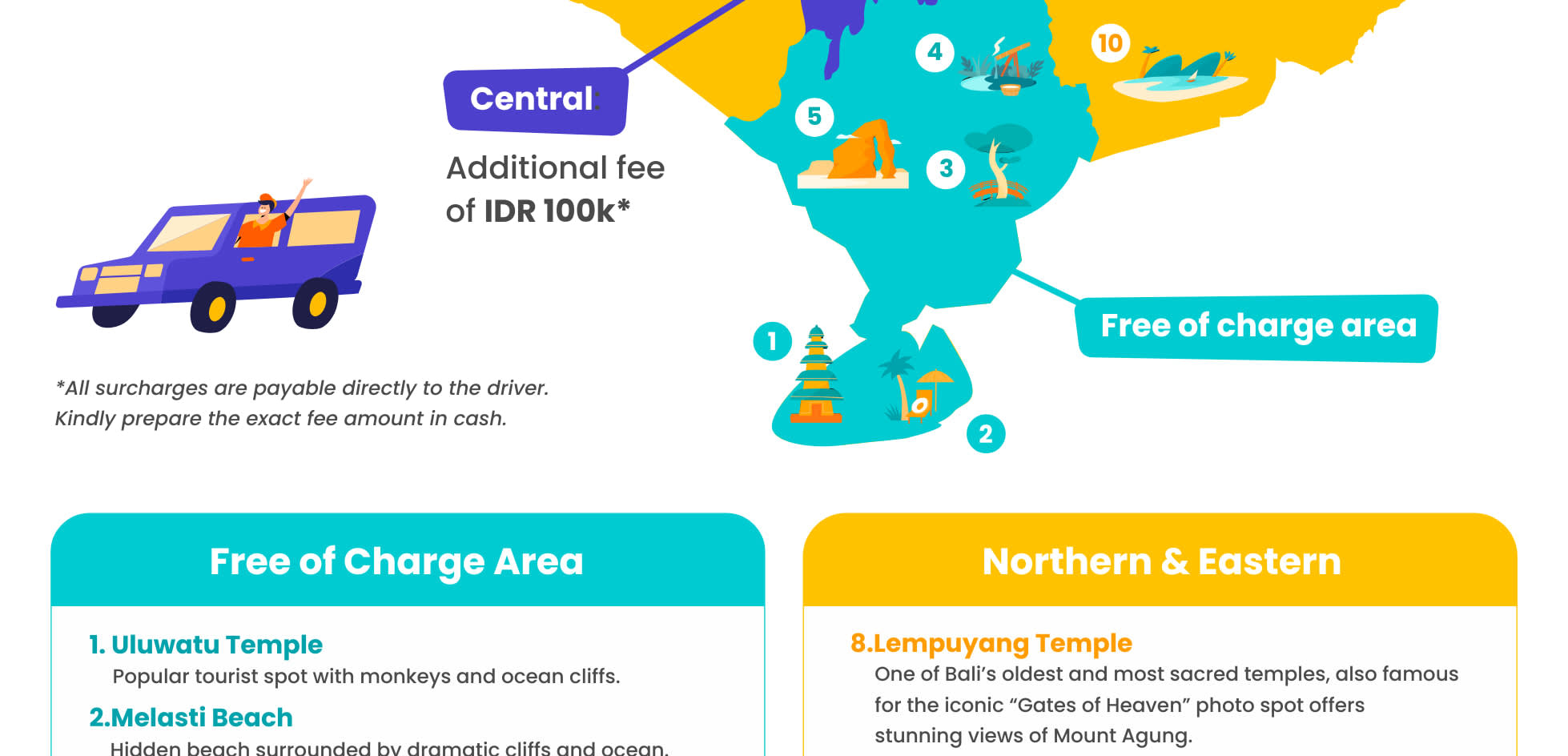 * 유연한 렌터카 이용 시간: 운전기사가 포함된 렌터카를 10시간 동안 이용하면서 안전하고 효율적인 서비스를 누리며 발리에서 원하는 대로 일정을 계획해 보세요.