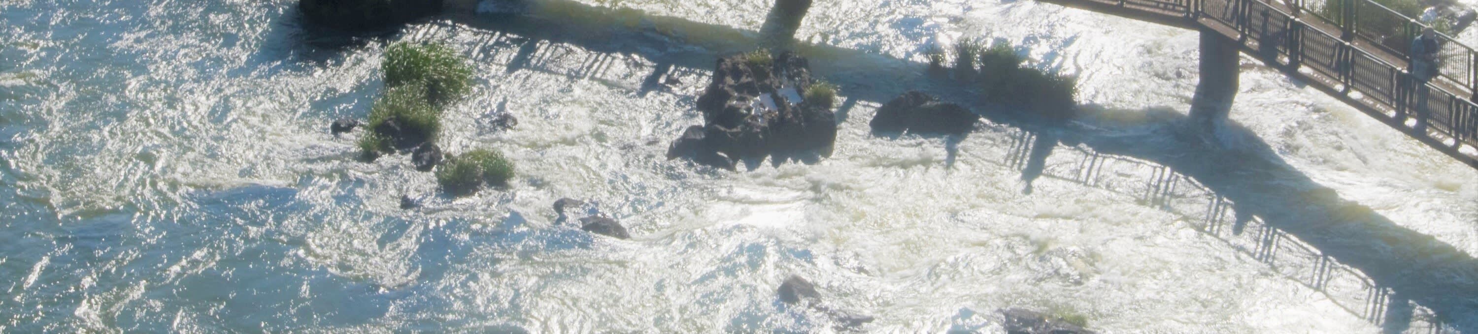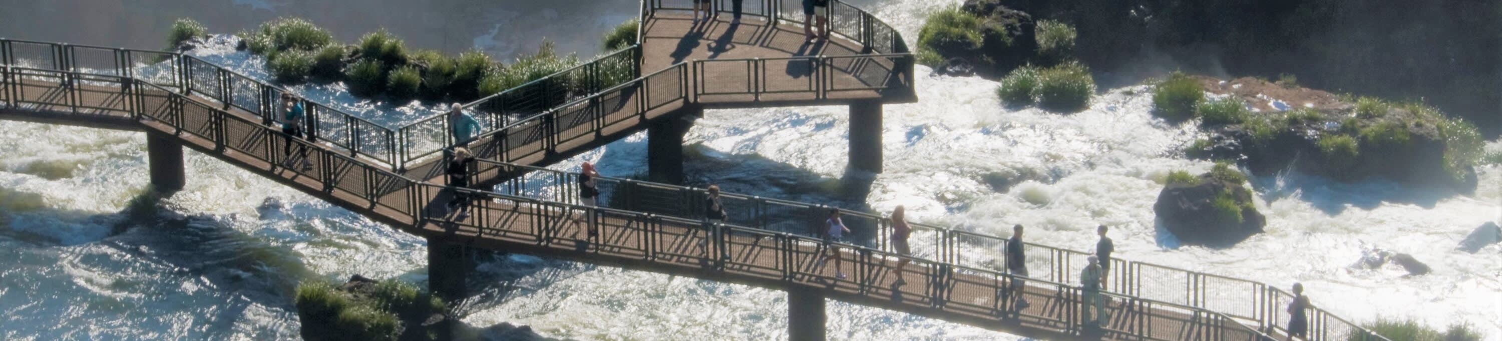 • 세계에서 가장 큰 폭포 시스템의 일부이자 신 7대 자연경관 중 하나인 이구아수 국립공원의 브라질 쪽을 방문해 보세요. 방문객 센터에서 시작하여 활기찬 새, 나비, 코아티의 서식지인 울창한 대서양림을 가로지르는 11km의 여정을 떠나세요. 폭포의 25%만이 브라질에 있지만, 국경 너머에 있는 나머지 75%의 광활한 파노라마 전망을 즐길 수 있습니다. 950m 길이의 트레일을 걸으며 이구아수 강이 형성한 약 275개의 폭포를 감상하세요. 벤자민 콘스탄트 폭포와 데오도로 폭포 근처의 플랫폼에서는 80m 높이의 낙차와 공원 내 가장 큰 수량을 자랑하는 거대한 악마의 목구멍에 감탄하게 될 것입니다. 파노라마 엘리베이터는 또 다른 멋진 전망을 제공합니다. 포르투 카노아스(식사 불포함)에서 방문을 마치고 기념품 가게를 둘러보세요.