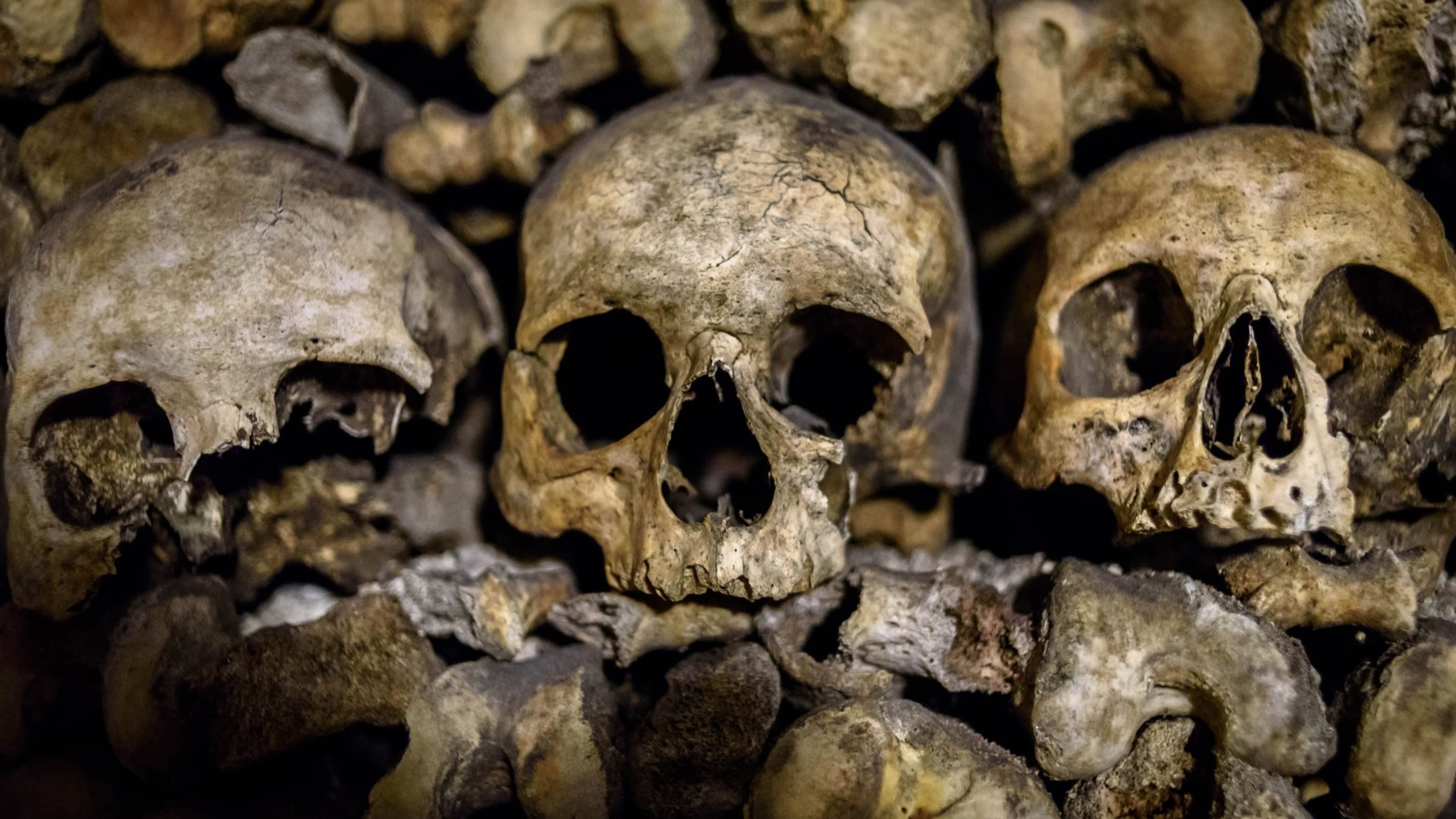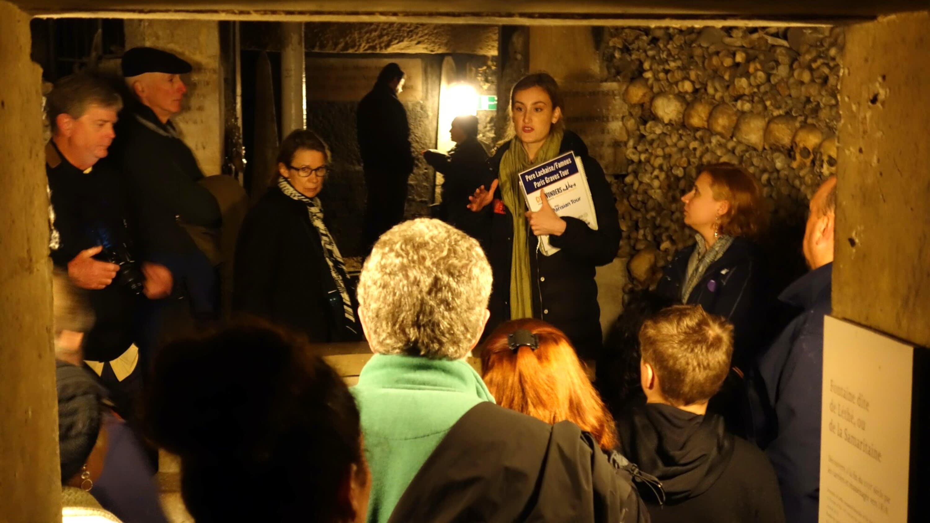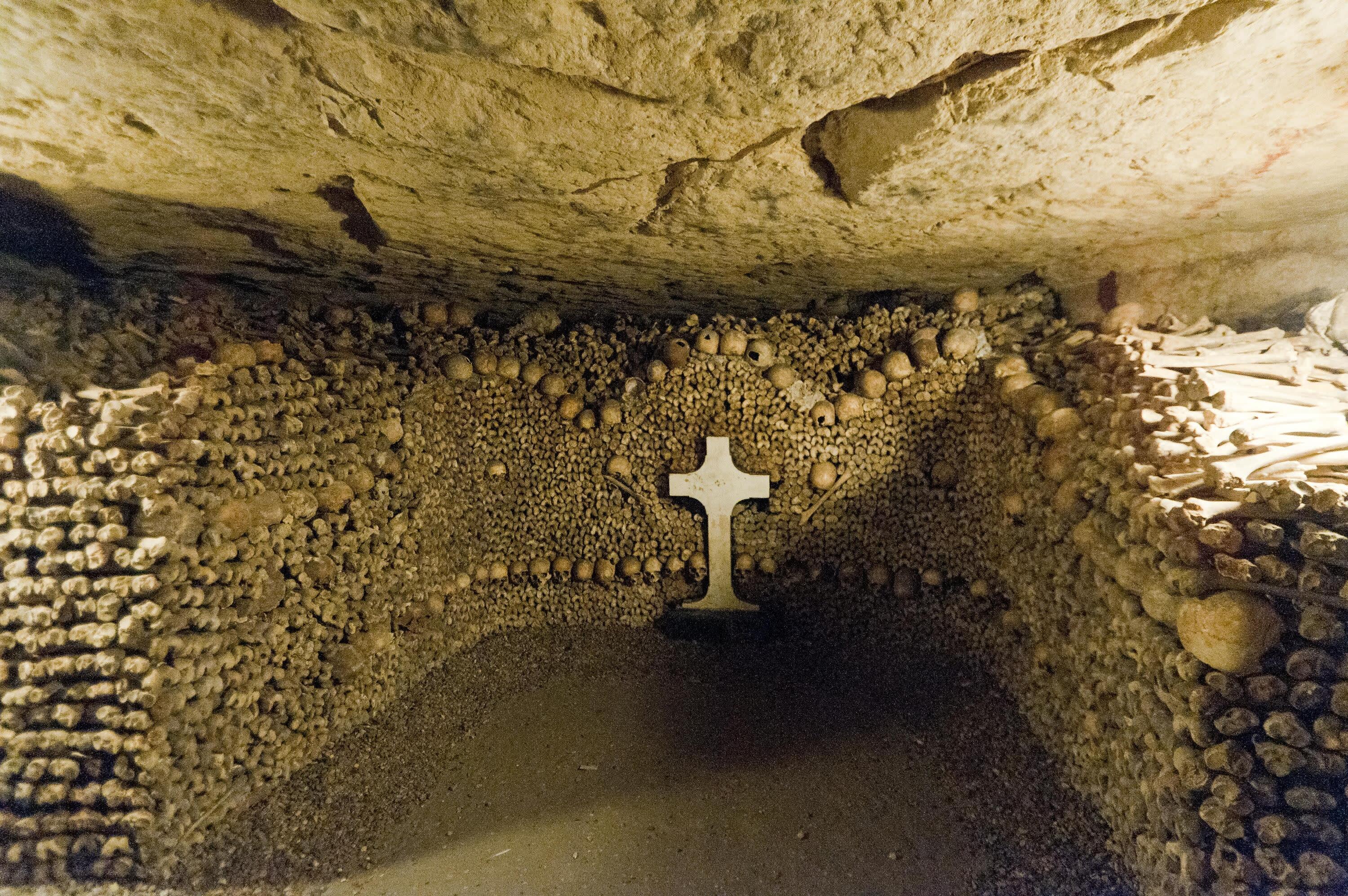 * 파리의 지하 깊숙한 곳에 위치한 으스스한 지하 묘지에서 긴 줄을 건너뛰고 탐험해보세요.