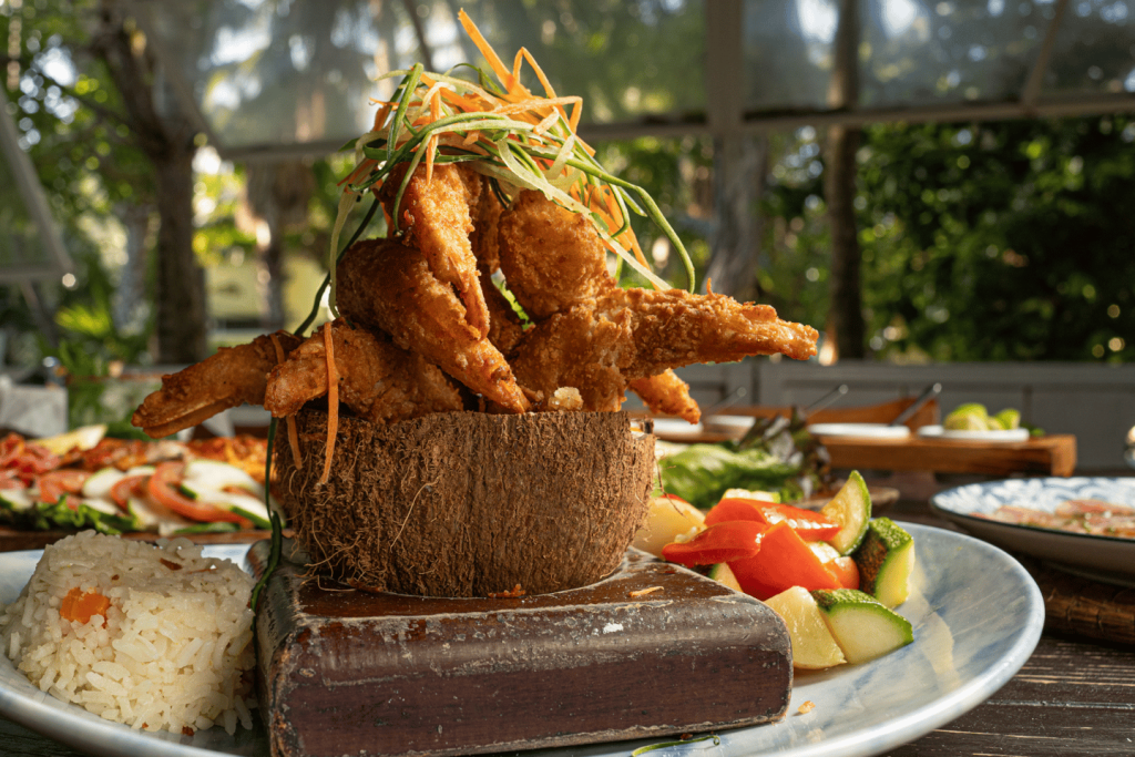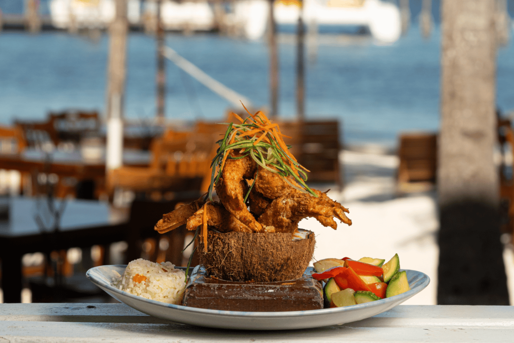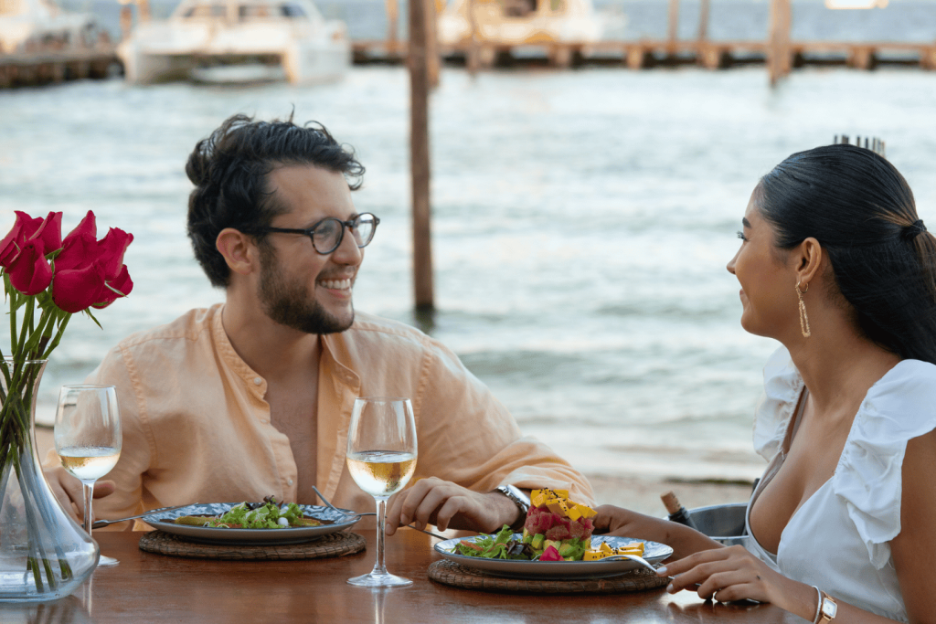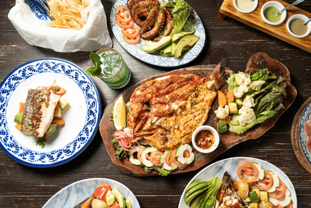 푸에르토 후아레스의 플라밍고스 씨푸드 키친에서 발밑의 모래와 파도 소리를 들으며 낭만적인 바닷가 저녁 식사로 소중한 사람을 놀라게 해 보세요.