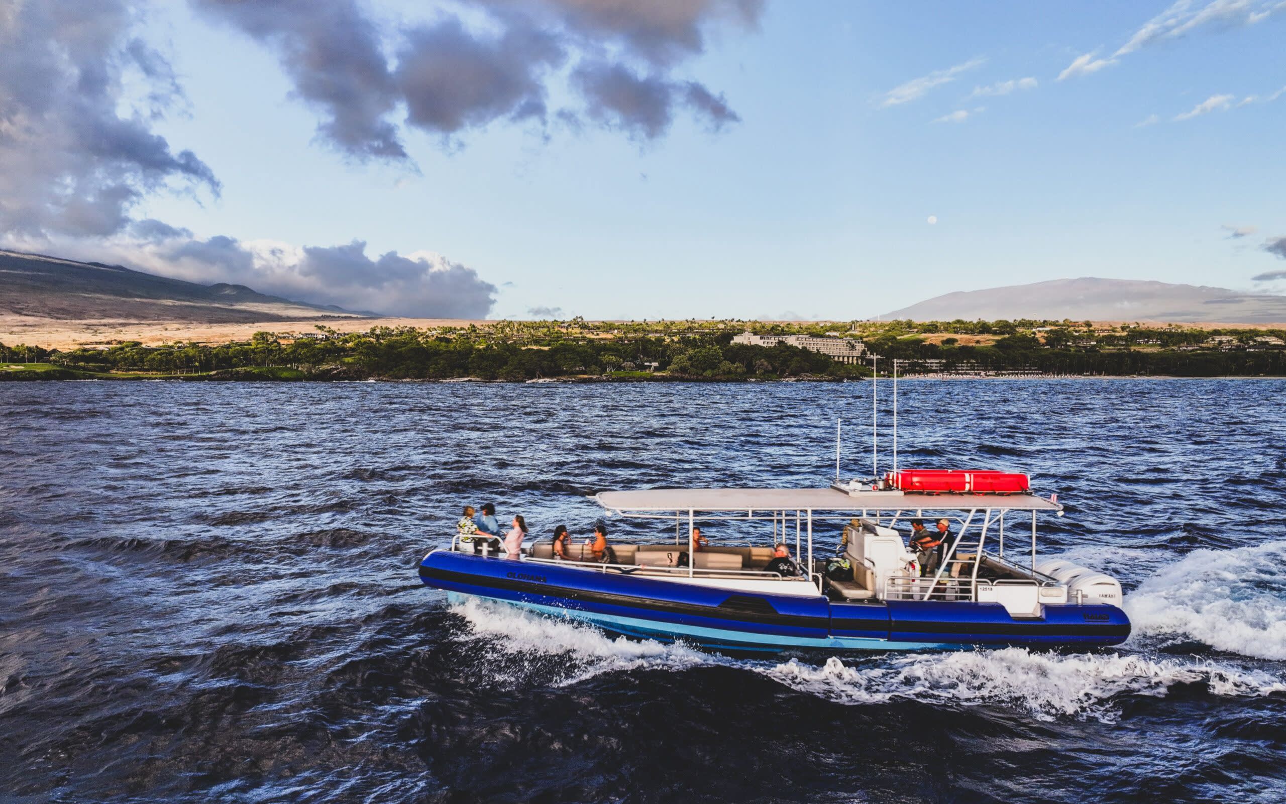 편안함과 모험을 위해 제작된 세련된 41피트 럭셔리 쾌속정 오로하나(Olohana)를 타고 카와이해 항구에서 매혹적인 마우나 케아 선셋 크루즈를 떠나보세요. 아름다운 코할라 해안을 따라 미끄러지듯 나아가며 마우나 케아, 마우나 로아, 후알랄라이의 웅장한 봉우리 뒤로 석양이 하늘을 다채로운 색으로 물들이는 모습을 감상하세요. 유난히 맑은 저녁에는 마우이에서 해협 건너편으로 반짝이는 할레아칼라를 볼 수도 있습니다. 장난기 넘치는 돌고래를 찾아보시고, 겨울에는 경외심을 불러일으키는 혹등고래를 만나보세요. 특별한 날을 축하하거나 단순히 하와이 바다의 고요한 아름다움을 만끽하고 싶을 때, 이 잊을 수 없는 크루즈는 휴식, 로맨스, 섬의 마법이 완벽하게 조화된 경험을 선사합니다.