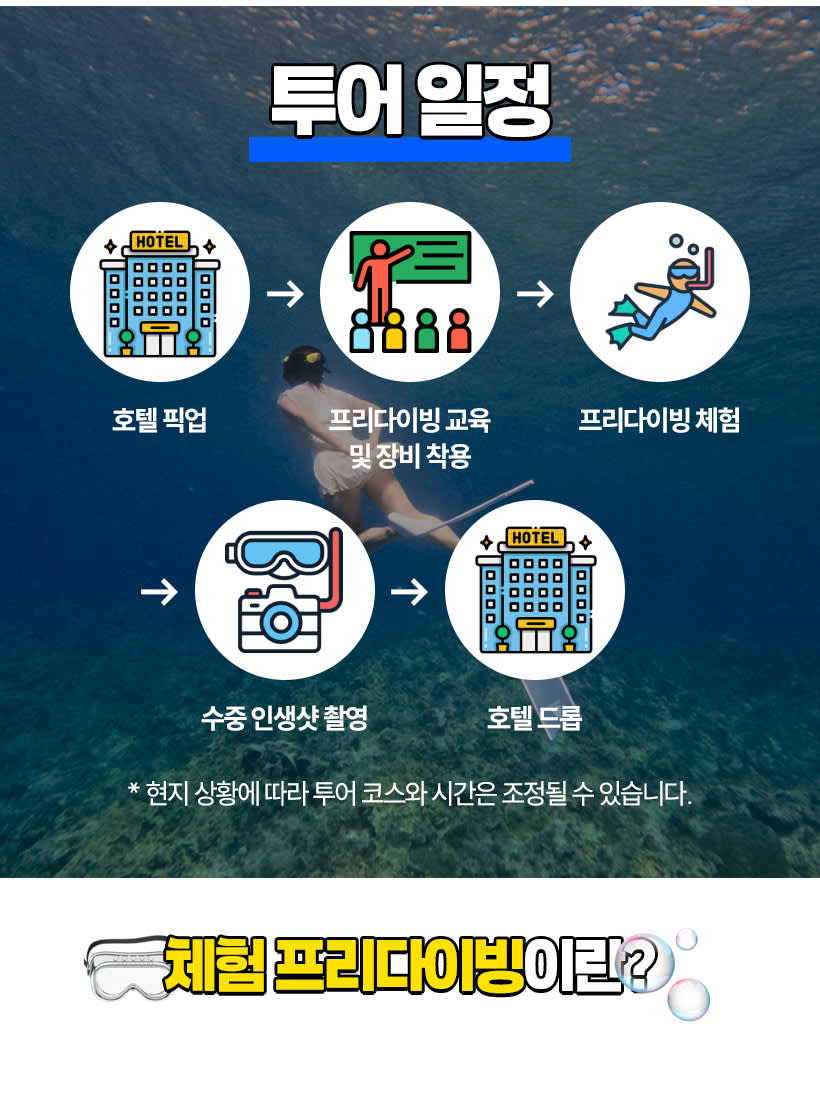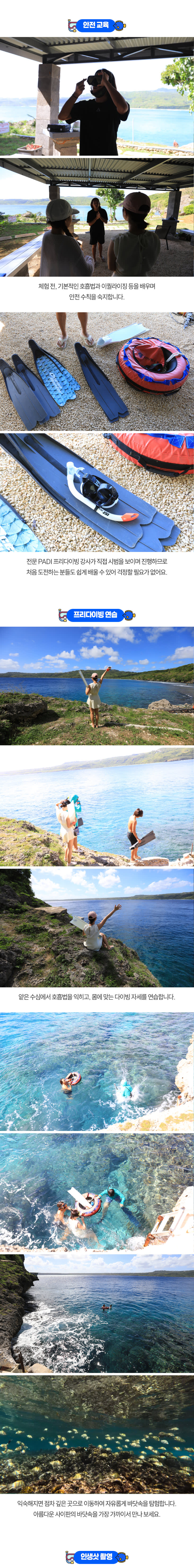 PADI 프리다이빙 자격증을 소지한 현지 강사님께 안전하고 즐겁게 배우며,