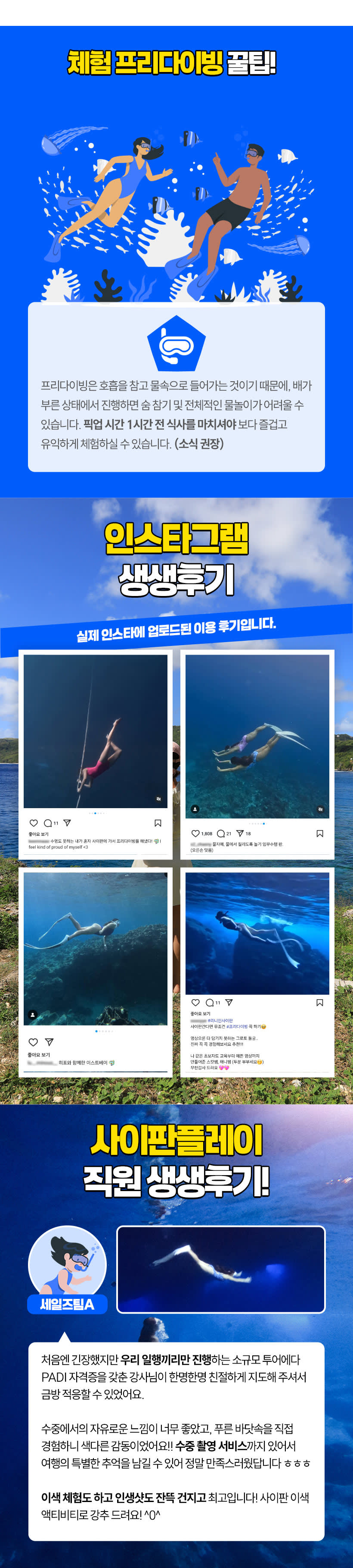 프리다이버라면 꼭 한 번쯤 경험해 봐야 할 사이판 대표 액티비티에요! 🐬