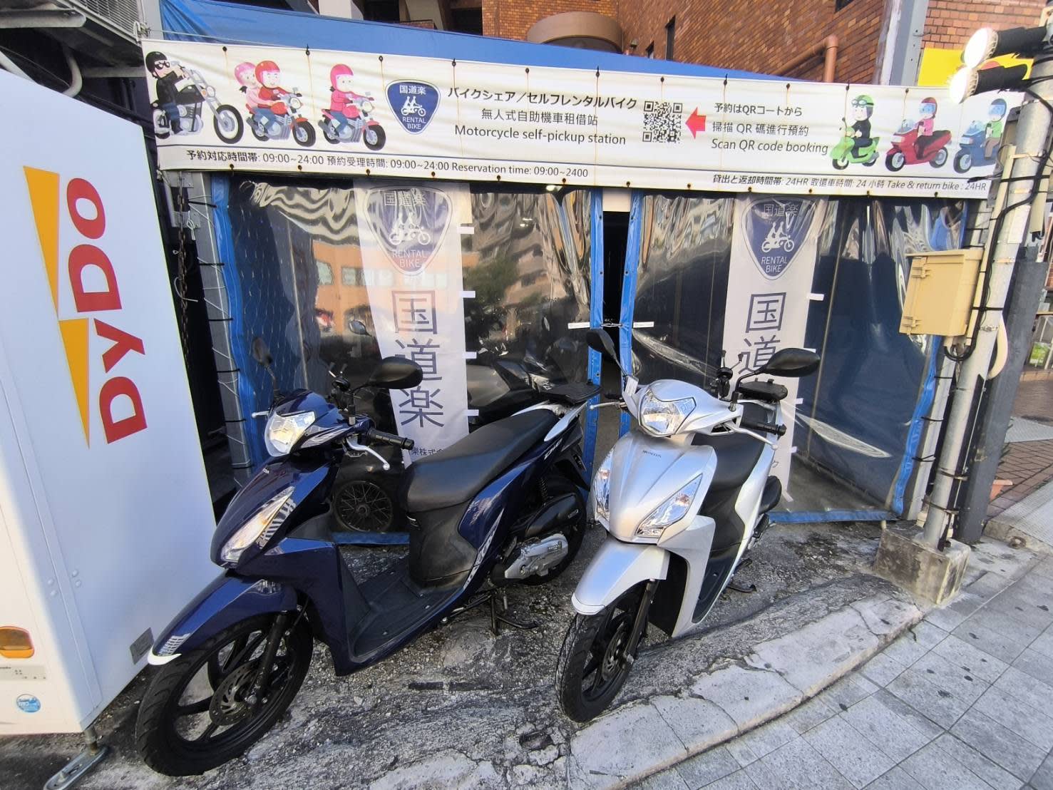 125cc 이하 차종 대여 가능 (랜덤 제공): Honda Tact50 / Honda Ape100 / Honda Dio110 / Honda Cub110 / Honda CrossCub110 / Honda Benly110