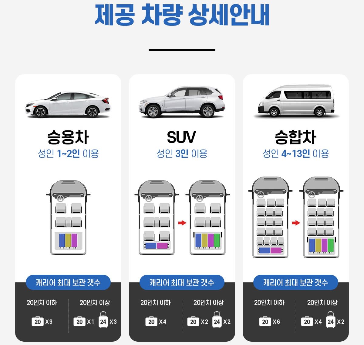 (승용차/SUV/승합차) 편도당 20,000동($1) ~ , 6시간 이하이용시 50,000동($2)~ , 6시간 이상이용시 100,000동($4)~