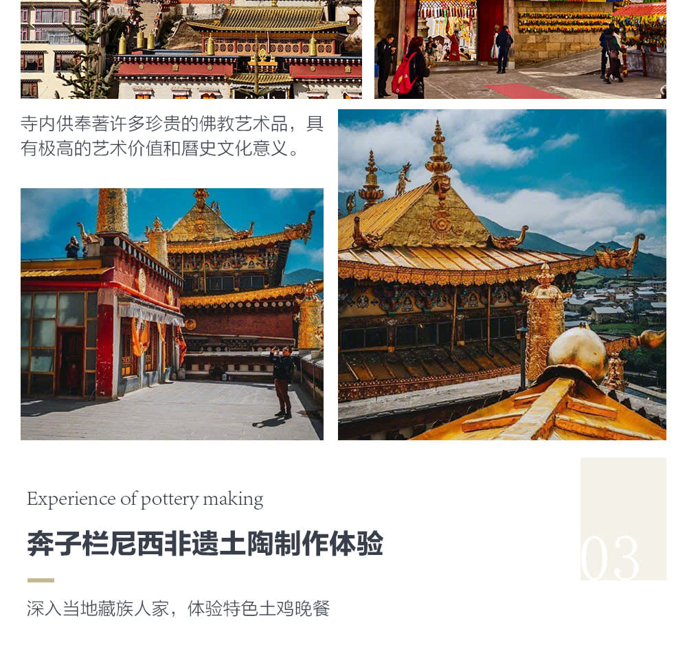 * D3 벤즈란 타운 - 니시 무형문화유산 토기 - 티베트 가족 방문, 특선 닭 연회 - 진사강 굽이길 통과 - 메이리 설산(약 80km/1.5시간)