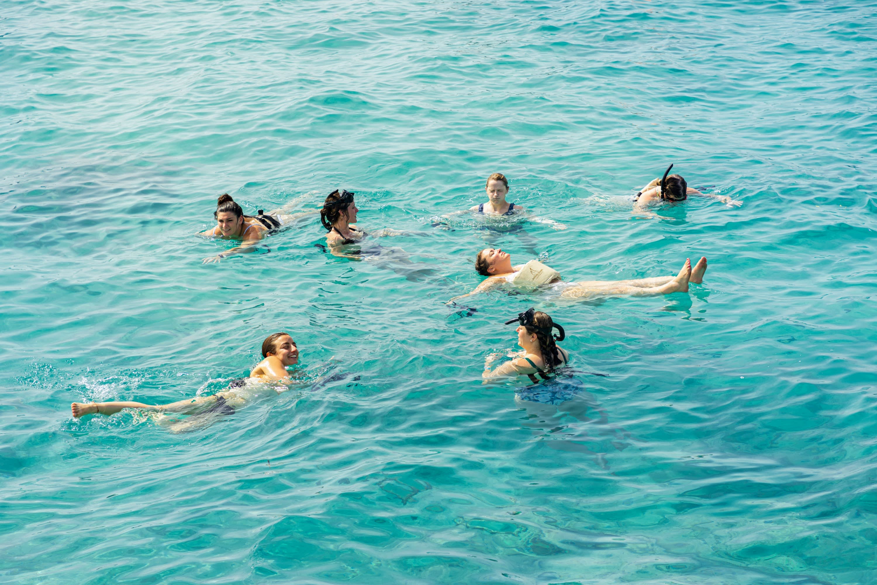 스노클링 세션 후 승무원은 재미를 더하고 수정처럼 맑은 물이 허리 높이까지 오는 숨막힐 듯 아름다운 자연 해상 모래톱으로 이동합니다. 여기에서 휴식을 취하고, 수영하고, 활기찬 음악에 맞춰 춤을 추며, 햇볕을 쬐세요.