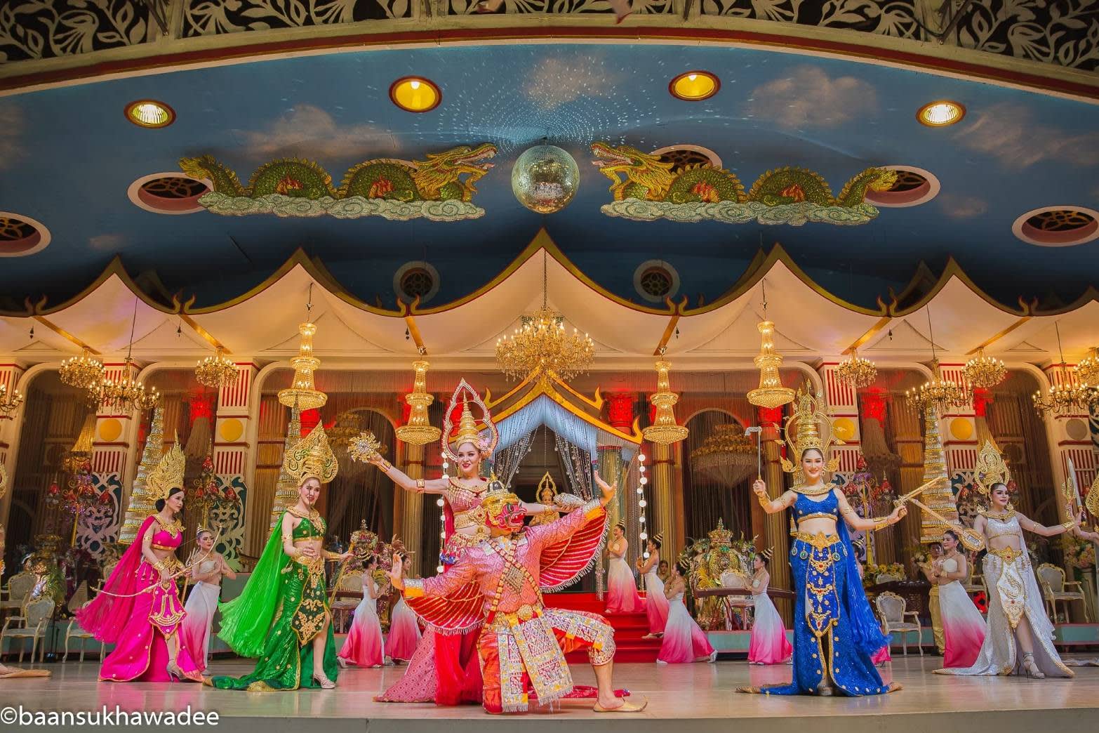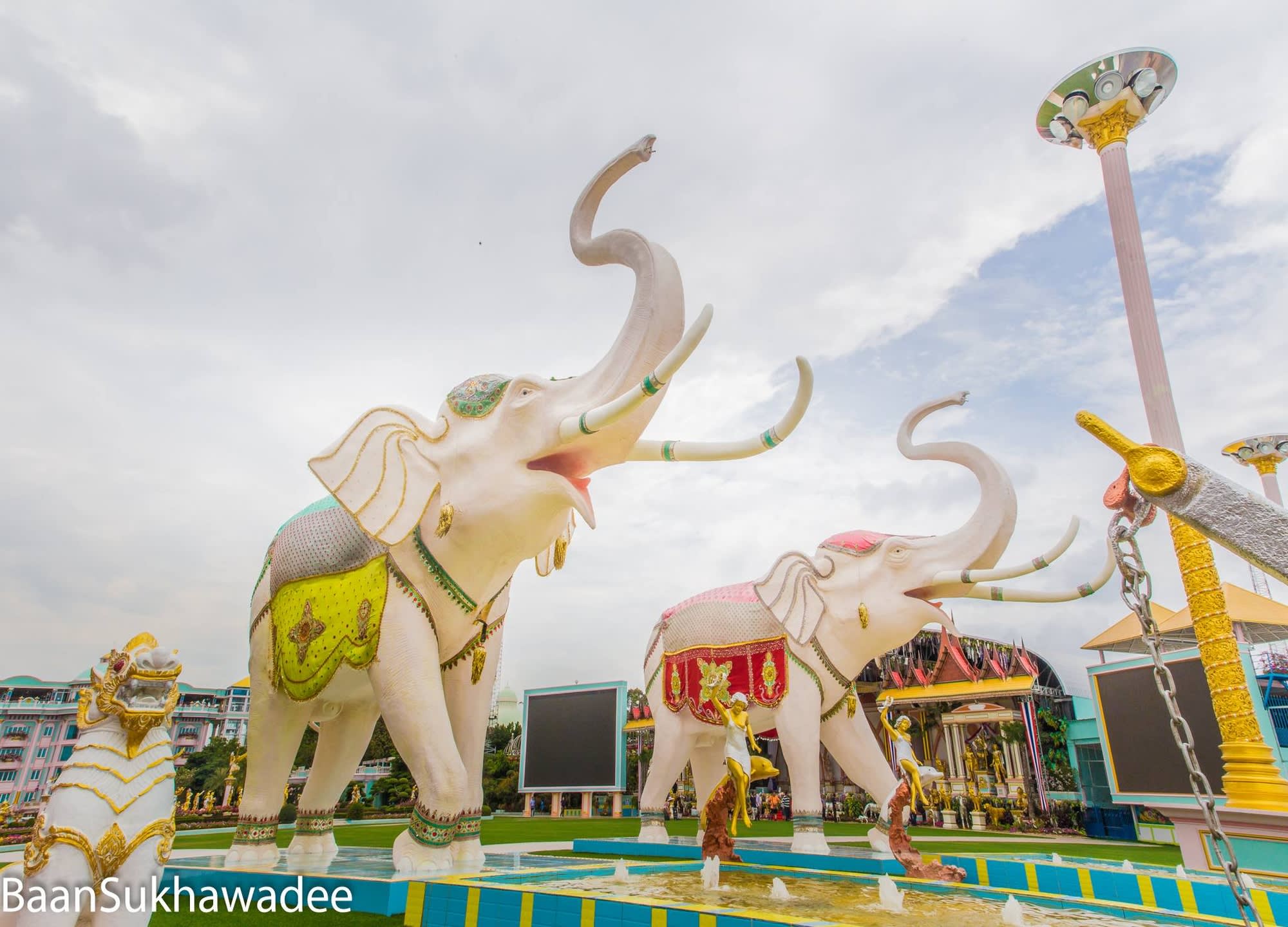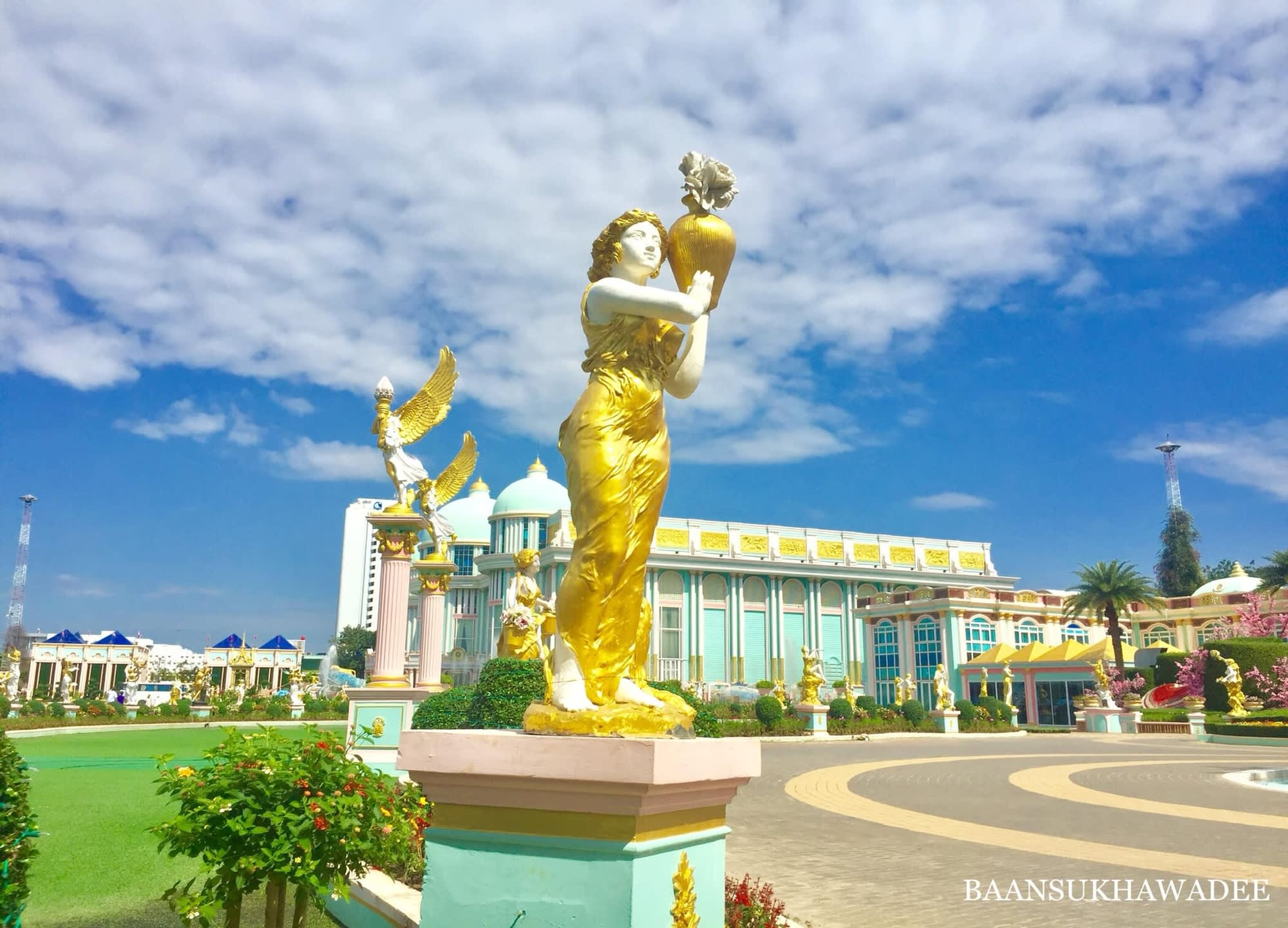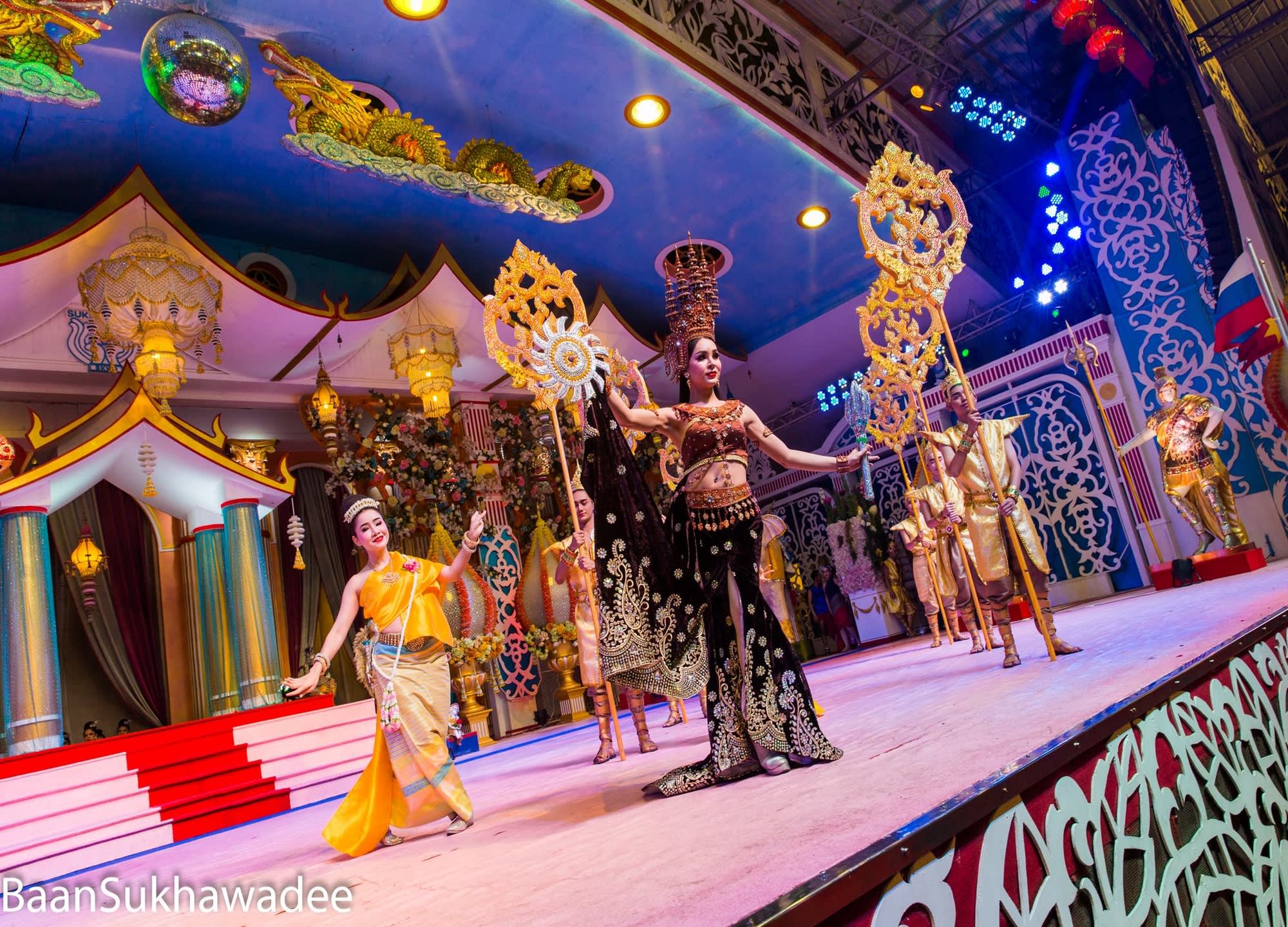 * 정원이 있는 아름다운 저택 반 수카와디(Baan Sukhawadee)는 파타야에서 특별한 태국의 우아함을 경험하기에 이상적인 장소에요!! 파타야 동부 해안 해안에 위치한 반 수카와디(Baan Sukhawadee)는 태국의 경제 위기 당시 방문객을 유치하고 화합을 도모하기 위해 한 부유한 사업가의 저택을 개조하여 만들어졌으며 분위기는 진리의 성전과 비슷합니다. 식사와 카바레 & 태국 댄스를 관람할 수 있는 것을 물론 부처님의 탄생, 탁신 대왕, 5세 국왕, 태국 해군의 아버지로 알려진 크롬 루앙 춤폰 켓 우돔 삭(Krom Luang Chumphon Khet Udom Sak)을 위해 지어진 건물부터 불상 컬렉션을 볼 수 있는 부다 타워(Buddha Tower) 등의 미술 컬렉션, 불교 유물, 식물원, 태국 및 서양식 건축물 등을 갖춘 박물관 같은 독특하고 색다른 테마파크를 보고 싶다면 놓치지 마세요.