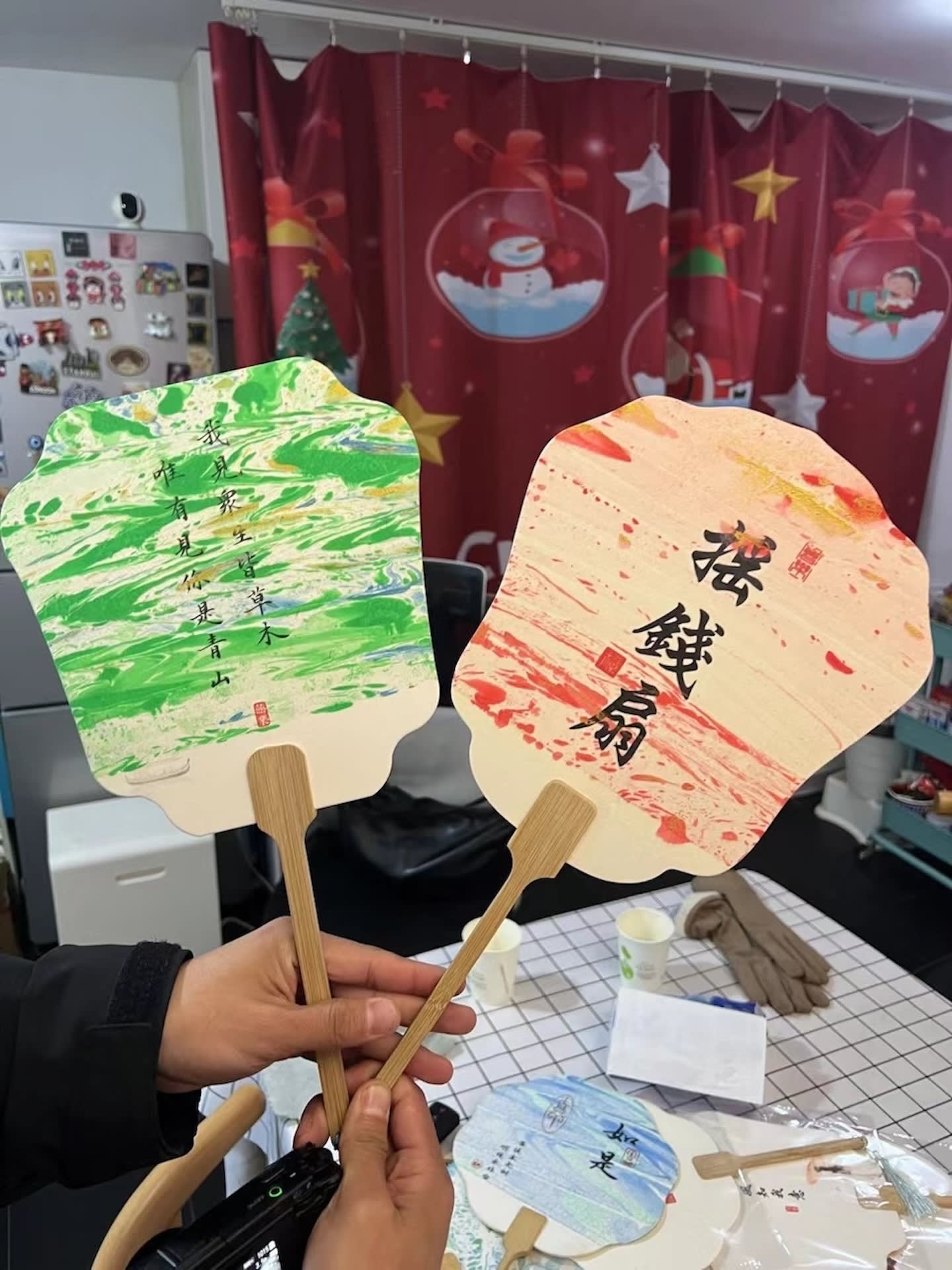 무형 문화재 옻칠 부채 체험 활동 과정: 무형 문화재 옻칠 부채 배경 소개 (5분) 자주 사용되는 옻칠 부채 기법 설명 (10분) 실제 옻칠 부채 체험 (15-20분) 건조 대기 시간 동안 기타 추가 항목/옻칠 제작 공예 설명 (5-10분) 사진 촬영 + 포장, 체험 공유 및 종료 (5분)