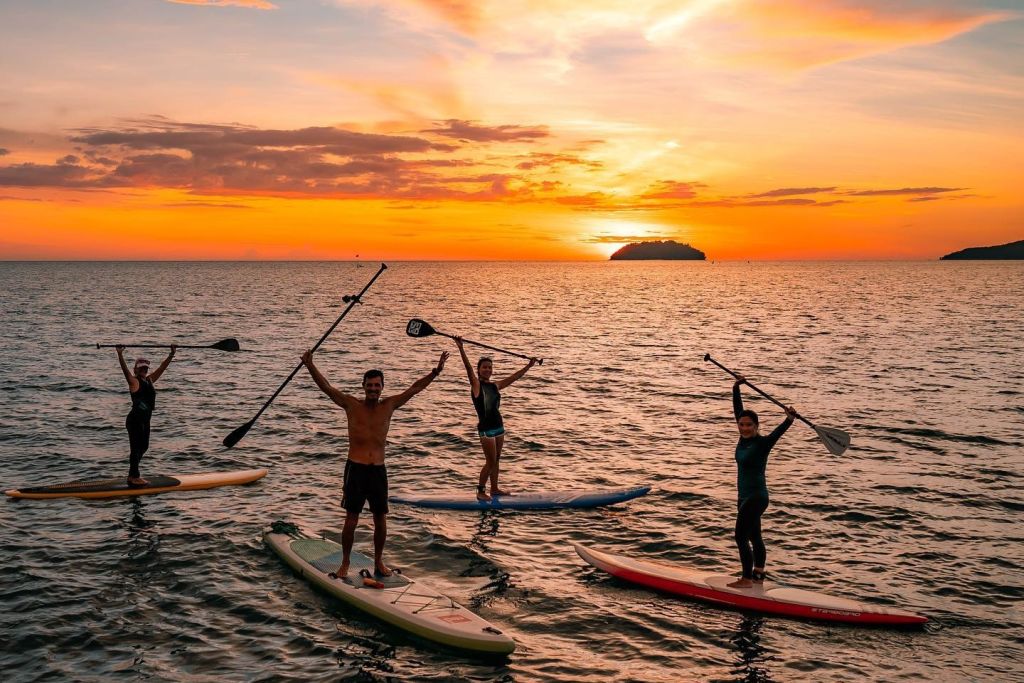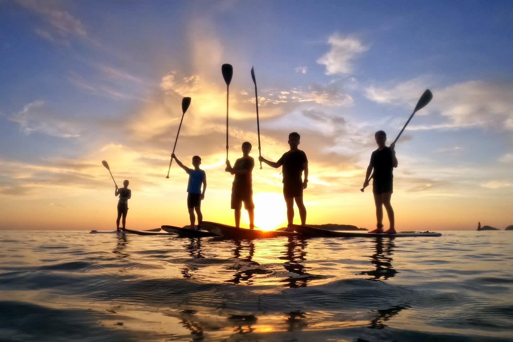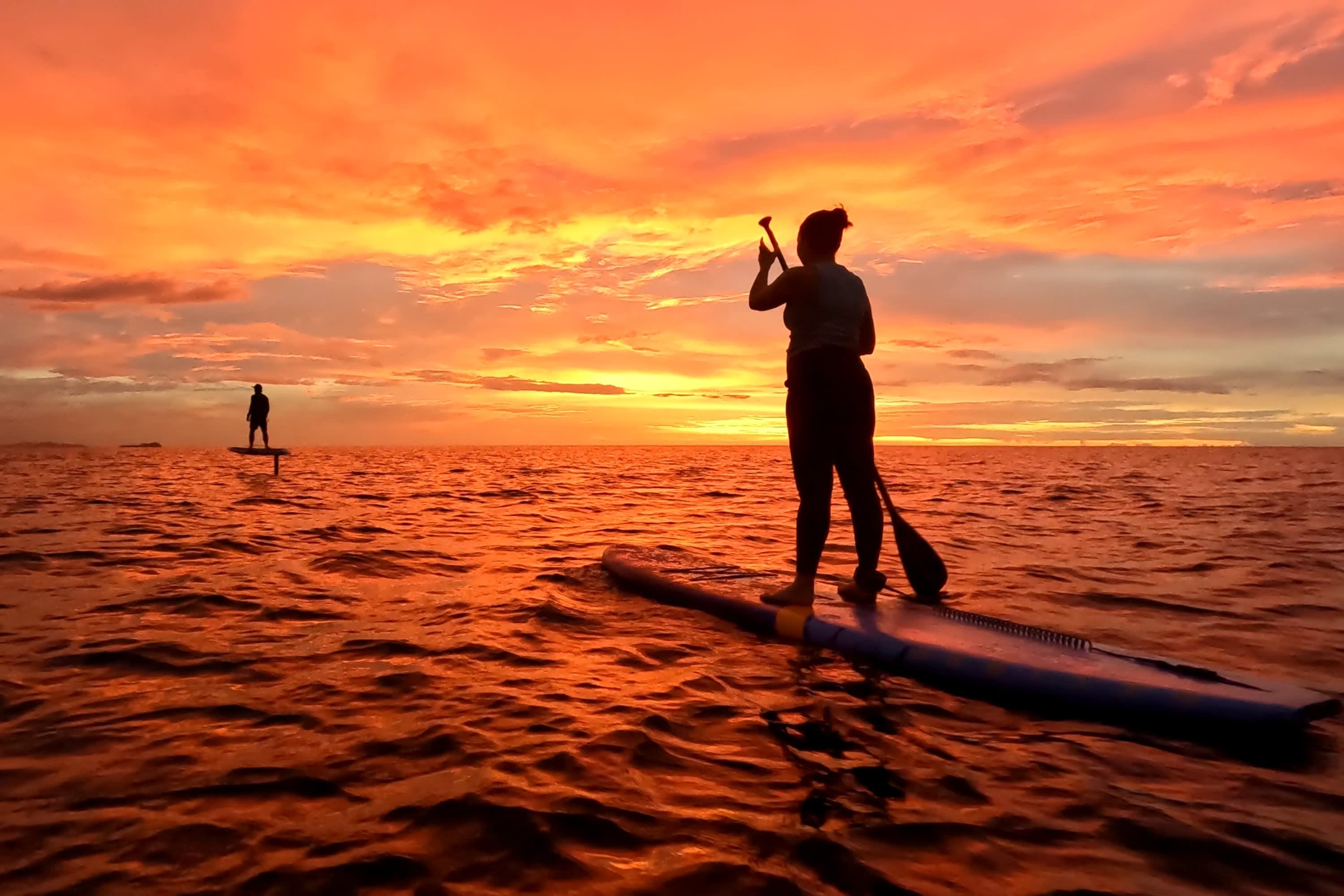 * 노련한 전문가의 안내를 받아 그림 같은 SUP 여행을 떠나 하늘의 불타는 듯한 장관을 사진에 담아보세요.