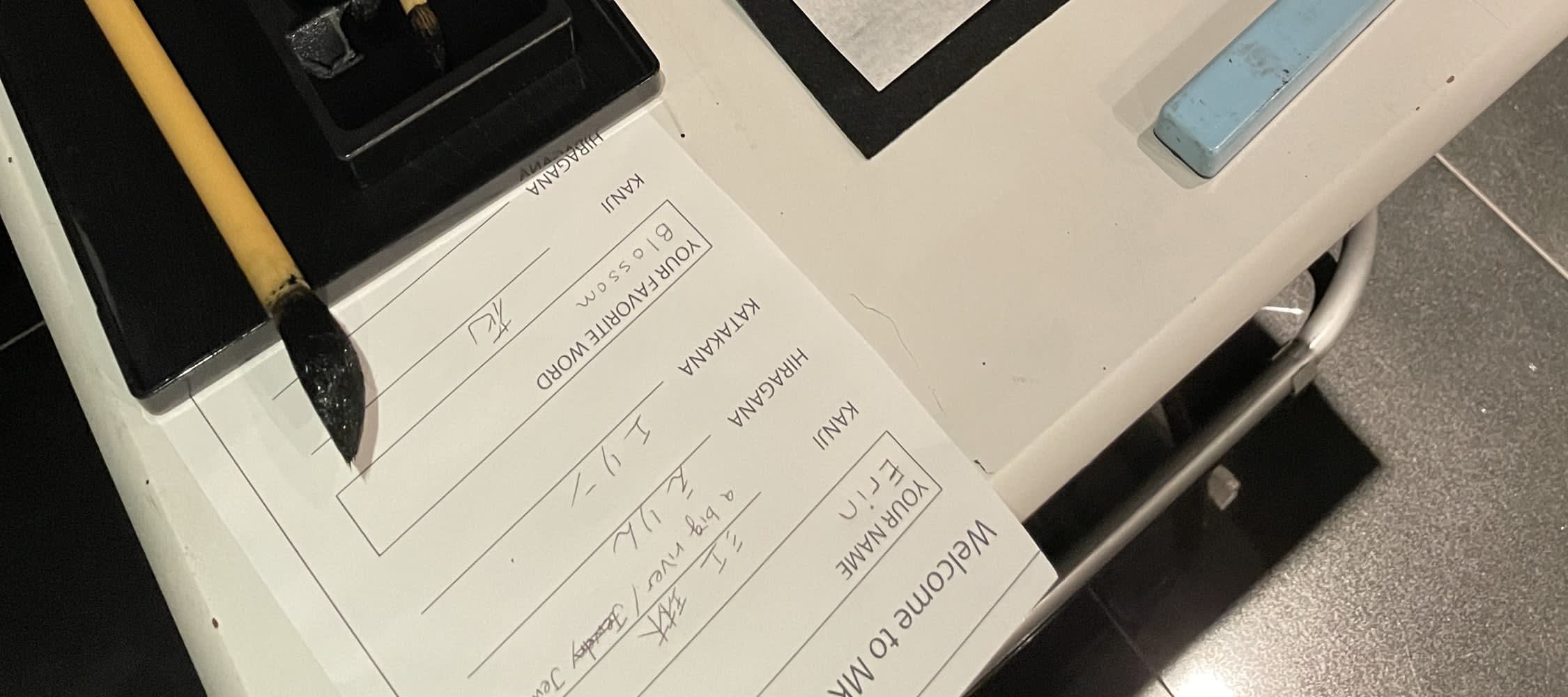 * 일본어로 자신의 이름을 쓰는 연습을 해 봅시다. 워크숍 동안 스태프가 도와드립니다.