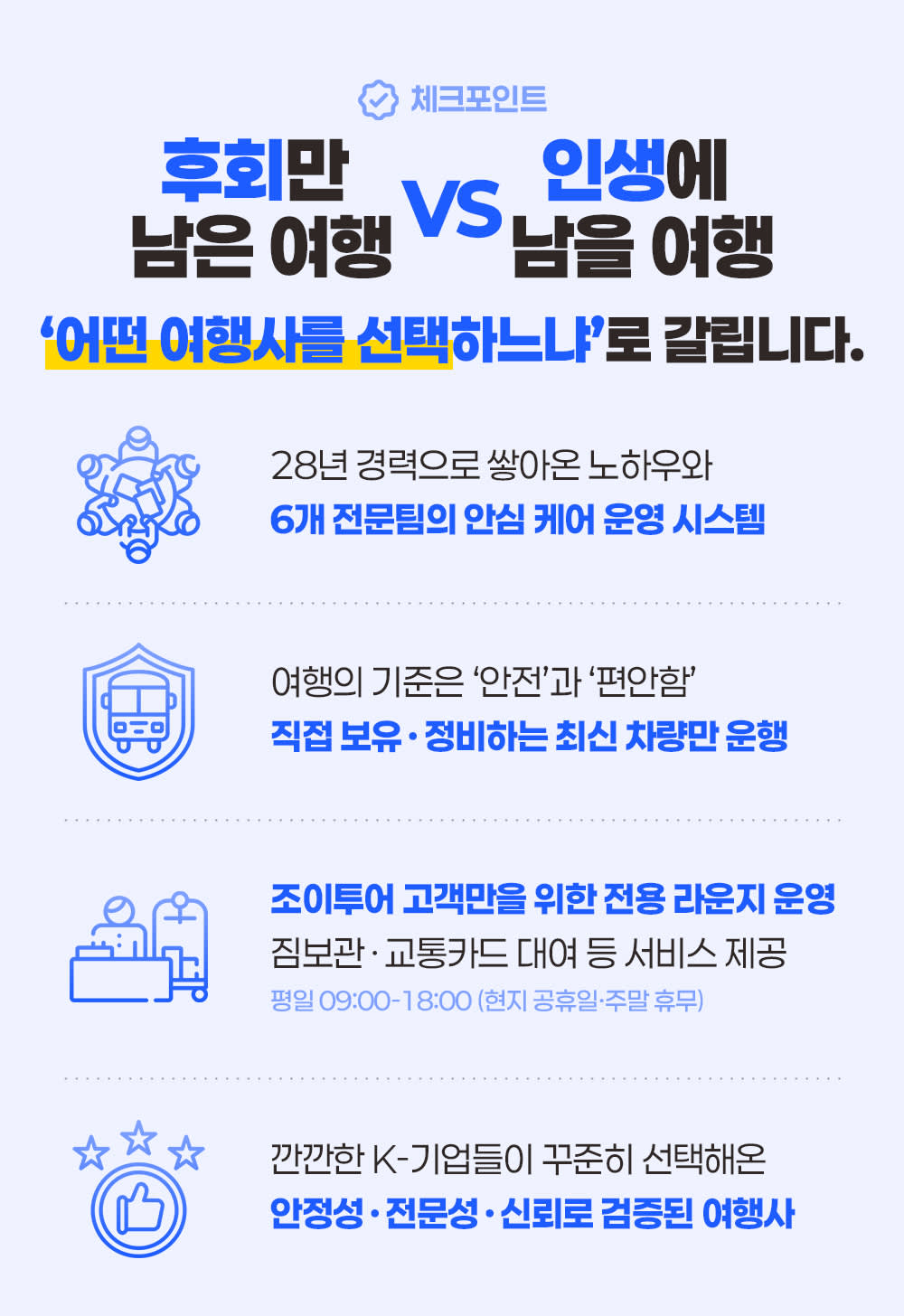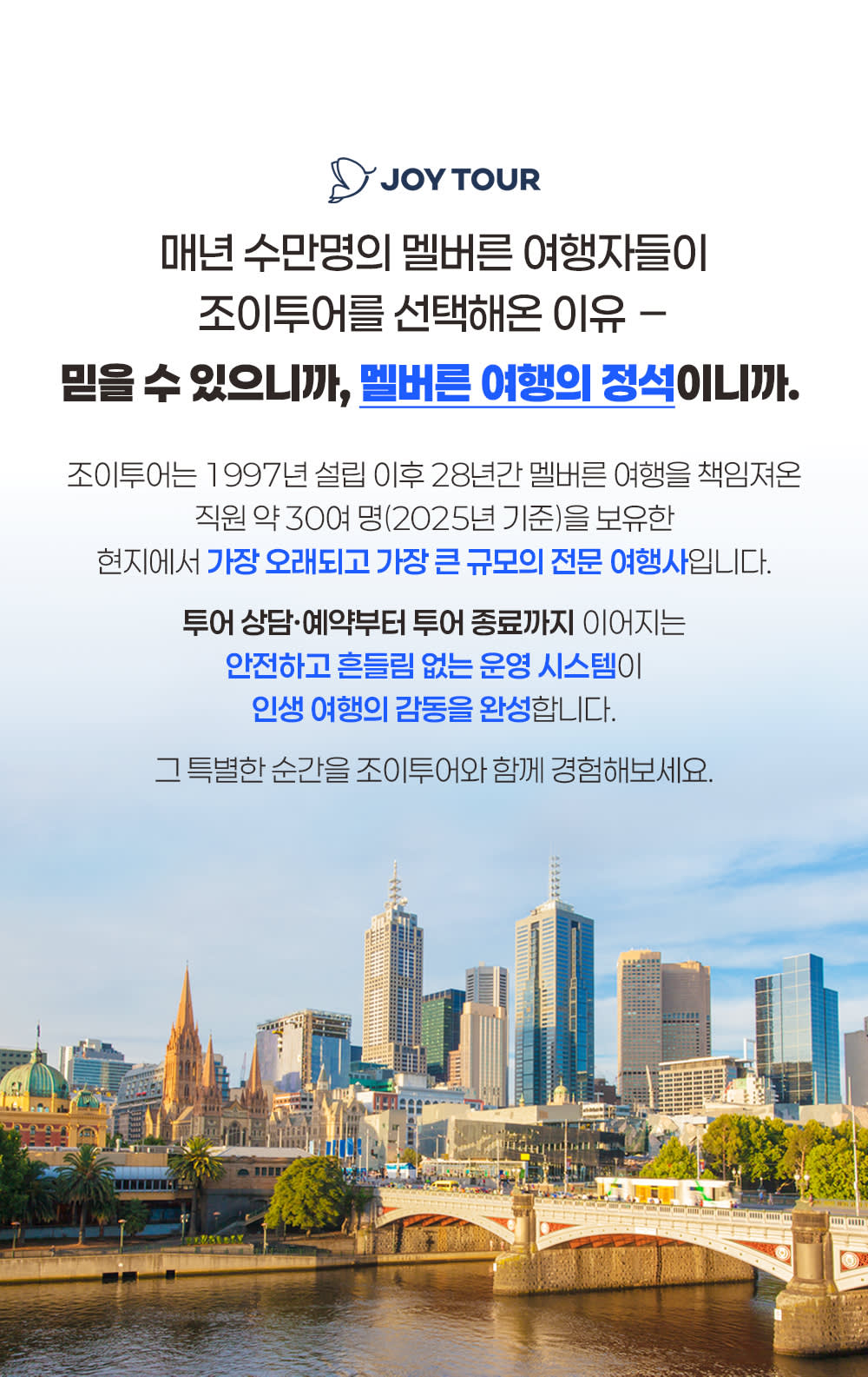 27๋…„๊ฐ„ ๋งค๋…„ ์ˆ˜๋งŒ ๋ช…์˜ ์—ฌํ–‰์ž๊ฐ€ ์กฐ์ดํˆฌ์–ด๋ฅผ ๋ฏฟ๊ณ  ์„ ํƒํ•ด์ฃผ๊ณ  ์žˆ์Šต๋‹ˆ๋‹ค.