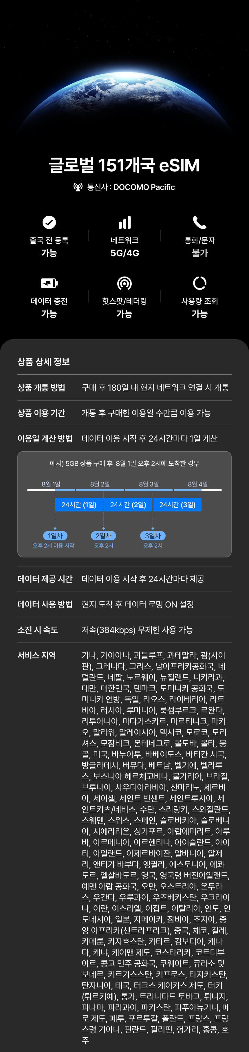 글로벌 151개국 이심 eSIM 제공량 모두 소진 이후에도 무제한 데이터!