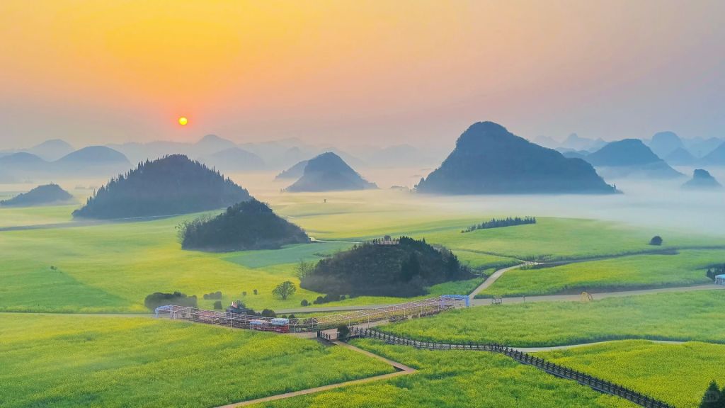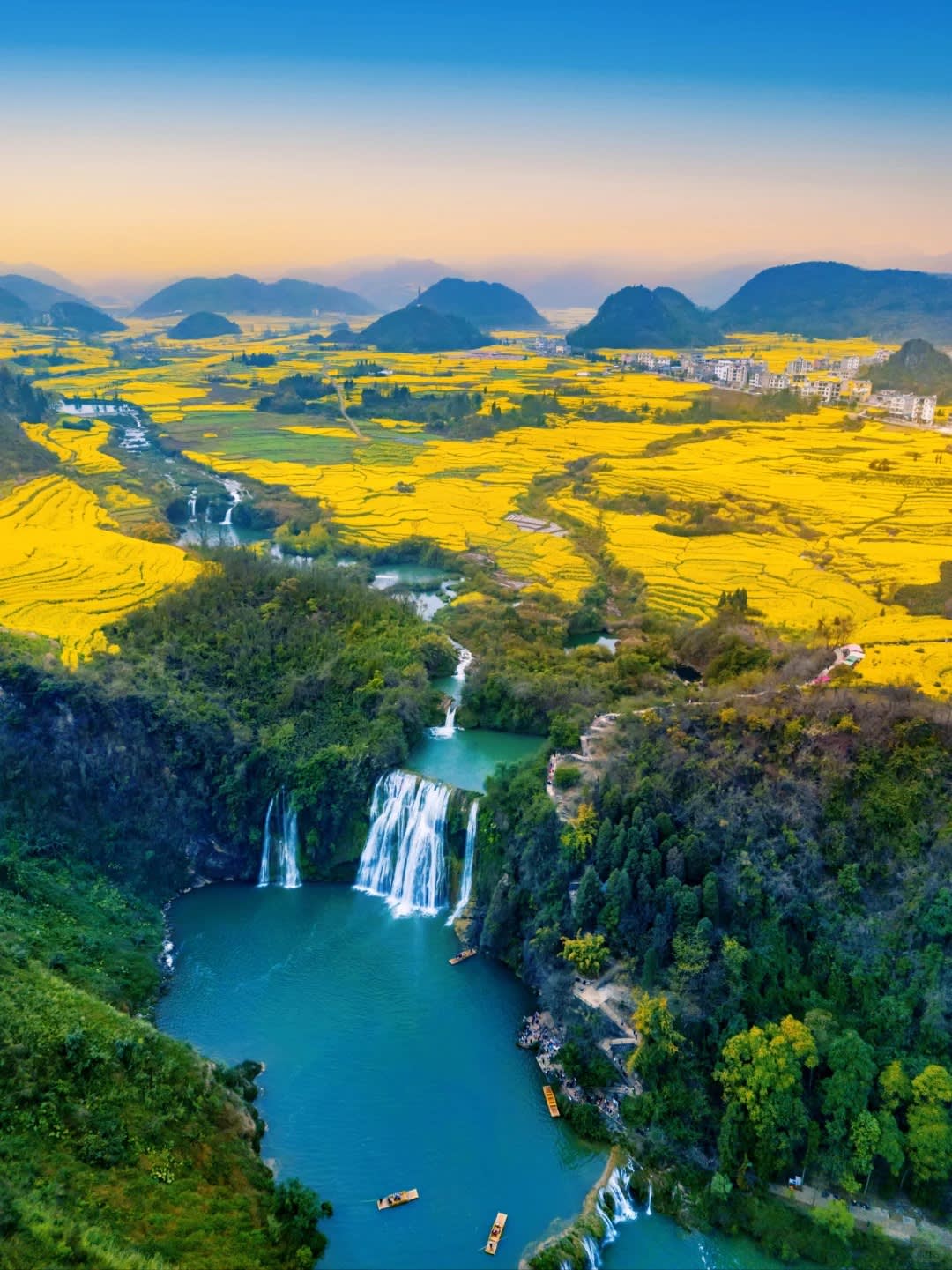* 장관: 백만 에이커의 꽃바다가 카르스트 봉우리 숲에 펼쳐져 대지가 쏟아낸 황금색 팔레트