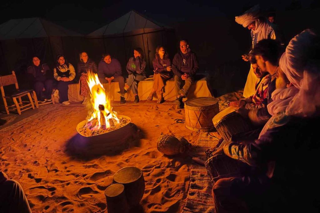 베르베르 사막 캠프에서 하룻밤을 보내며 별빛 아래에서 음악과 저녁 식사를 즐겨보세요
