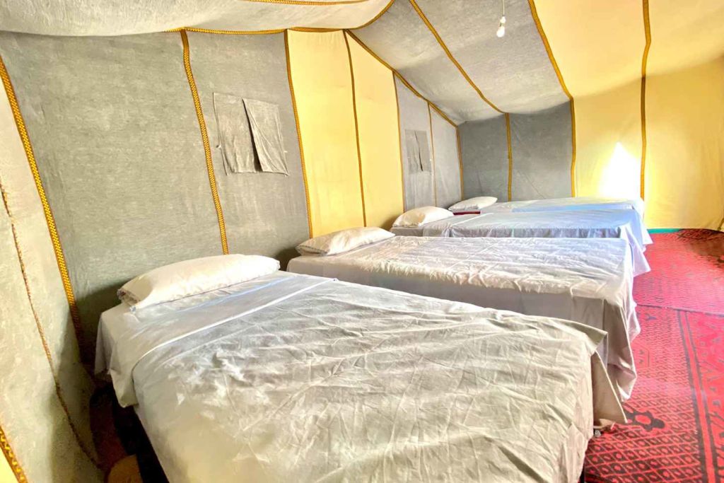 • 투어는 첫날 오전 7시에 시작하여 셋째 날 오후 8시경에 종료됩니다. • 여행 전날 오후 6시까지 왓츠앱(주 연락처)과 이메일을 통해 픽업 세부 정보를 받으실 수 있습니다. 막바지 예약(오후 5시 이후)은 오후 9시에 처리됩니다. • 마라케시의 호텔 또는 리야드에서 픽업해 드립니다. 숙소에 차량 접근이 어려운 경우, 도보로 가까운 거리에 모임 장소를 마련해 드립니다. • 투어는 우아르자자트에서 시작할 수도 있습니다. • 럭셔리 캠프와 스탠다드 캠프 모두 개인 텐트를 제공합니다. 럭셔리 텐트에는 전용 욕실이 마련되어 있으며, 스탠다드 텐트에는 근처에 공용 욕실이 있습니다. (자세한 내용은 '스탠다드 또는 럭셔리 사막 캠프 옵션'을 참조하세요.) • 일출/일몰 낙타 타기와 샌드보딩은 모든 캠프에 포함되어 있습니다. • 낙타 타기 대안: 캠프까지 도보로 이동(표준 옵션만 해당)하거나, 차량당 €50에 4륜구동 차량 교통편을 요청할 수 있습니다. 표준 및 럭셔리 캠프 모두에서 가능합니다. • 선택 사항으로 쿼드 바이킹 이용 가능(1인당 €50, 1시간 세션, 최소 2명) • 기온은 6월~8월에는 더우며, 11월~2월에는 밤에 춥습니다. * 소요시간 : 4320분 (옵션에 따라 소요 시간이 다를 수 있으니, 예약 시 확인 부탁드립니다.)