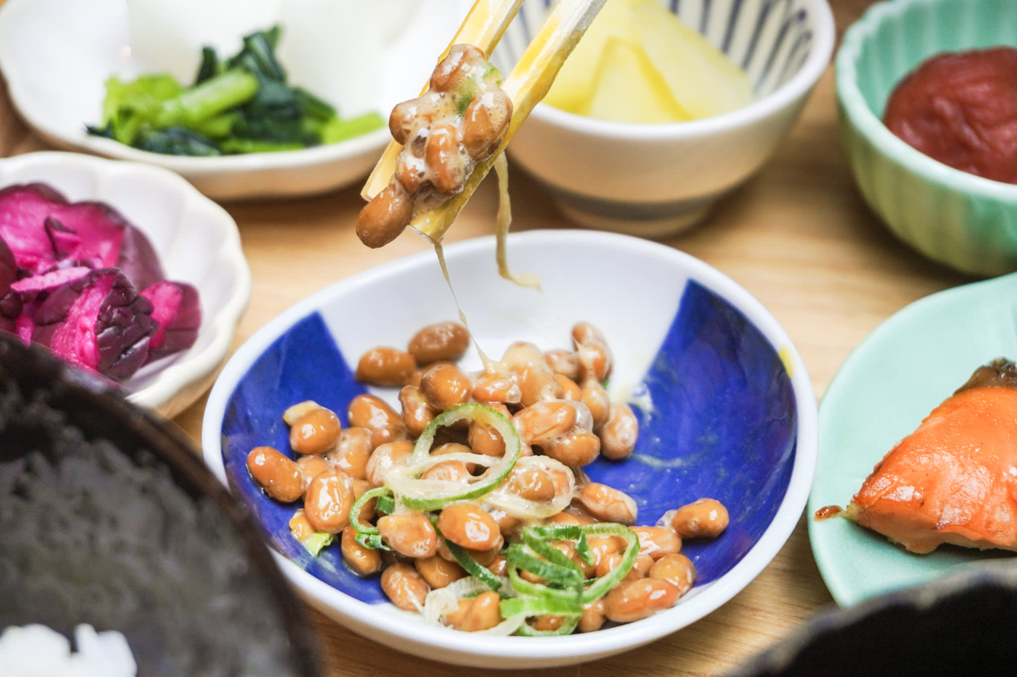 붐비는 시간을 피해 고요하고 풍요로운 문화 체험을 즐겨보세요. 먼저 교토의 대표적인 관광 명소인 기요즈미데라 (Kiyomizu-dera)를 방문합니다. 이곳은 하루 평균 약 12,300명의 방문객이 찾는 곳입니다. 교토의 옛 거리를 지나 현지 카페에 도착하여 일본 전통 아침 식사를 음미해 보세요. 식사에는 다양한 일본의 맛이 담겨 있으며, 그중에는 매우 독특한 맛도 있습니다. 모든 음식을 다 드실 필요는 없지만, 한번 드셔보시길 권해드립니다! 일본인처럼 하루를 시작하려면 다음과 같은 일반적인 아침 식사를 맛보세요.