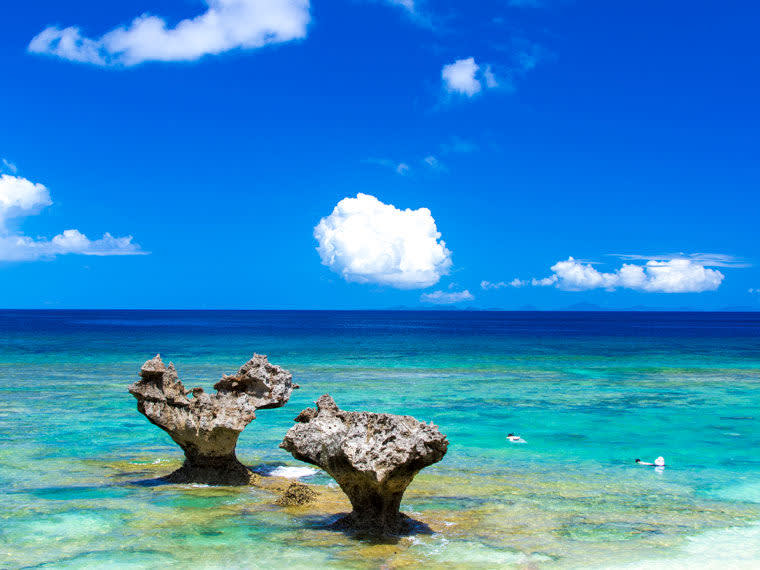 * "만좌모" 절벽에서 오키나와의 아름다운 바다를 배경으로 멋진 사진을 찍고 자연의 경이로움을 경험해 보세요.