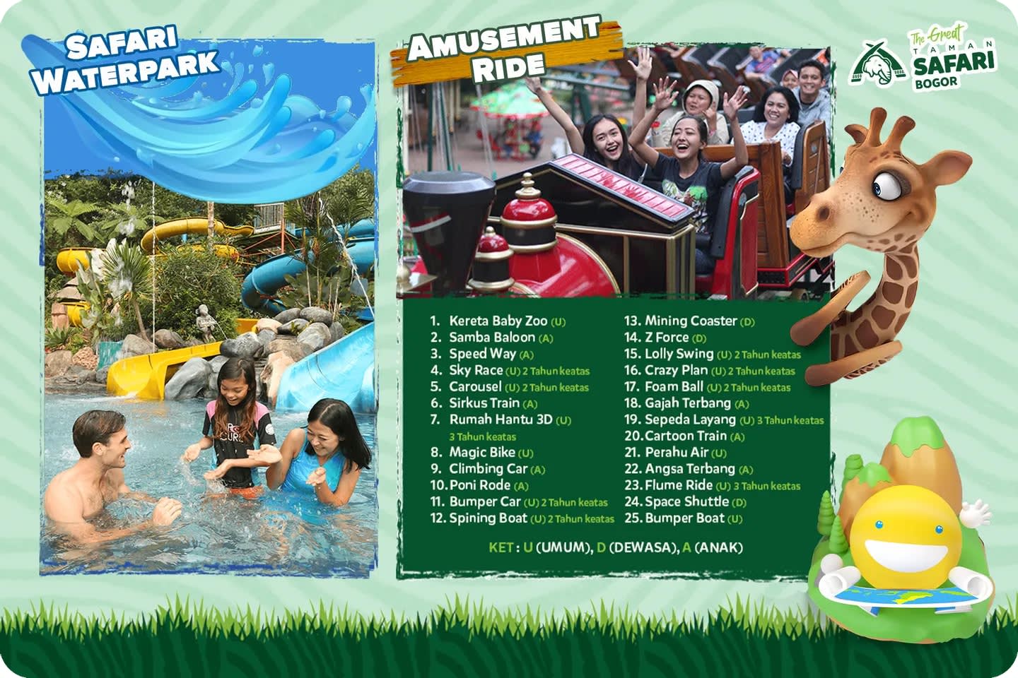 * 20개의 신나는 놀이기구와 동물 교육 프레젠테이션, 그리고 유명한 Curug Jaksa 폭포가 있습니다.